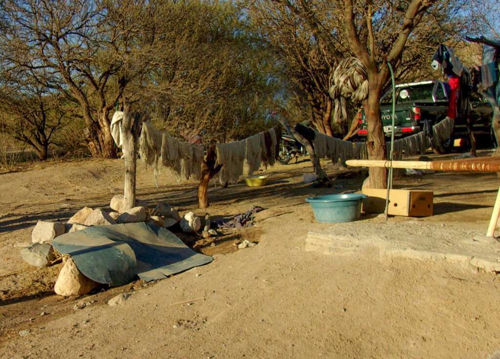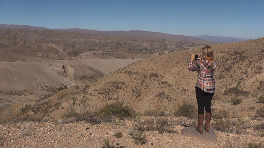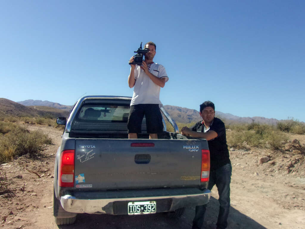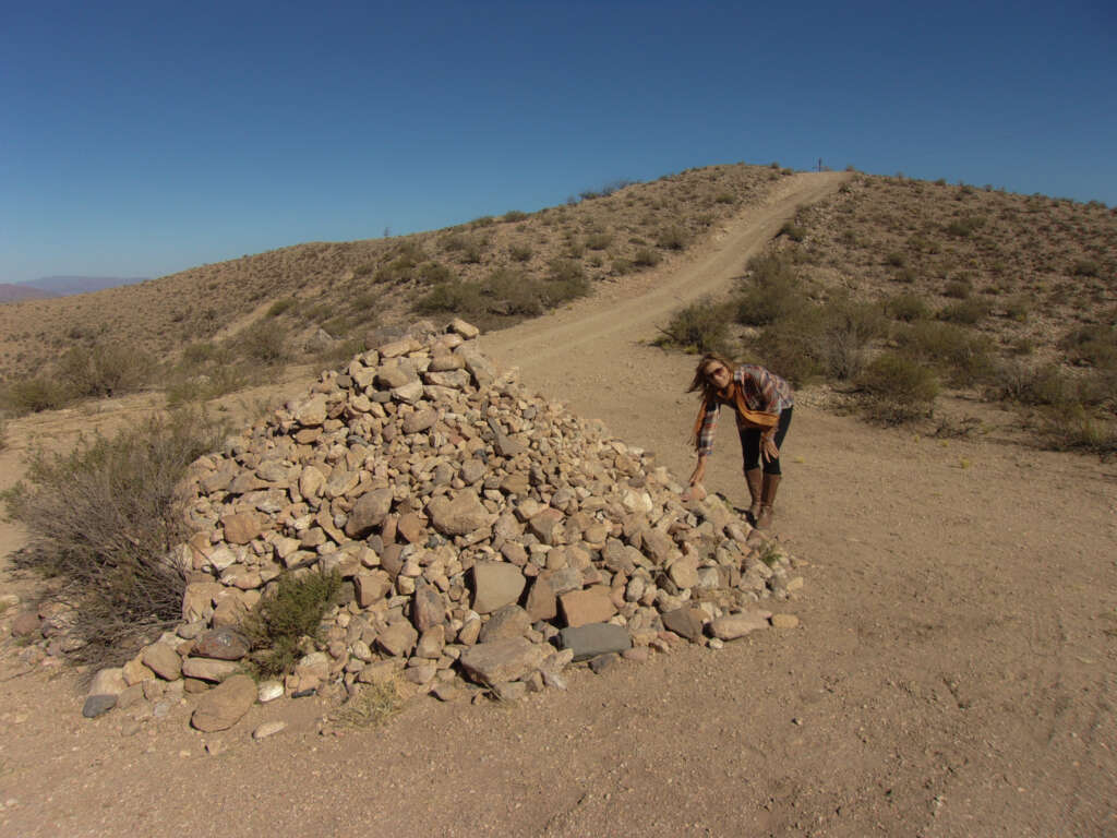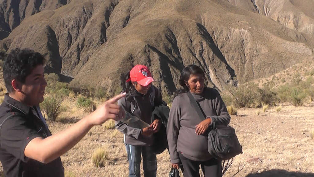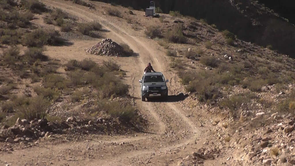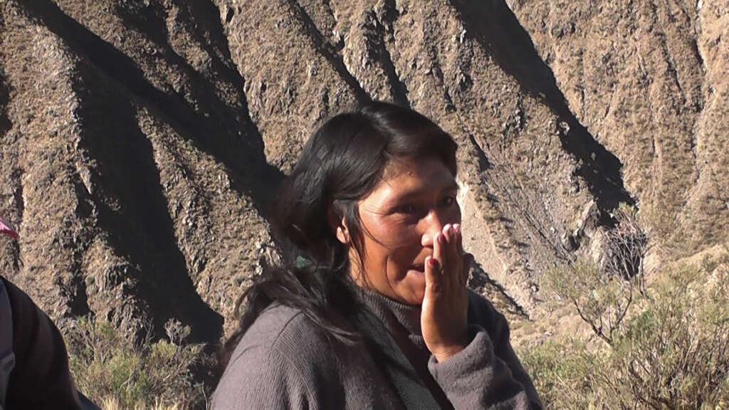 Hicimos un alto en una apacheta para colocar una piedra, es la ofrenda a nuestra Pacha Mama, y lo hacen todos los que pasan por allí. Desde la caja de la camioneta con el zoom de la filmadora, Ezequiel pudo divisar dos personas que caminaban a lo lejos, como eran imperceptibles al ojo humano, nos aclaró: «una trae una gorra roja». Continuamos el camino y de pronto asomando desde una pronunciada subida vimos dos mujeres, una niña adolescente y para nuestra sorpresa una mujer con un embarazo avanzado. Traían unos bolsos pequeños y una botella de agua, la expresión de alivio en ese rostro moreno me quedó grabado, dijo venir de un pequeño poblado y estar muy cansada, habían salido a las 11 de la mañana…eran las 5 de la tarde. La niña dejó la botella de agua debajo de un arbusto y subieron a la camioneta, nosotros fuimos en la caja. La inmensidad del paisaje y la situación nos hacía pensar en este hermoso país, tan grande, con tanta diversidad cultural y en lo importante que es llegar a esos lugares y conocer su gente, sobre todo para quienes vivimos en centros urbanos o cerca de ellos con realidades tan distintas. La camioneta siguió el camino regresando a Corral Quemado al atardecer. Pensaba que hay una casualidad, o (para los creyentes) que Dios te pone en un lugar, en un momento exacto, creo que a nosotros nos puso en ese camino, en esa soledad para aliviar un poco la larguísima caminata de esas mujeres…