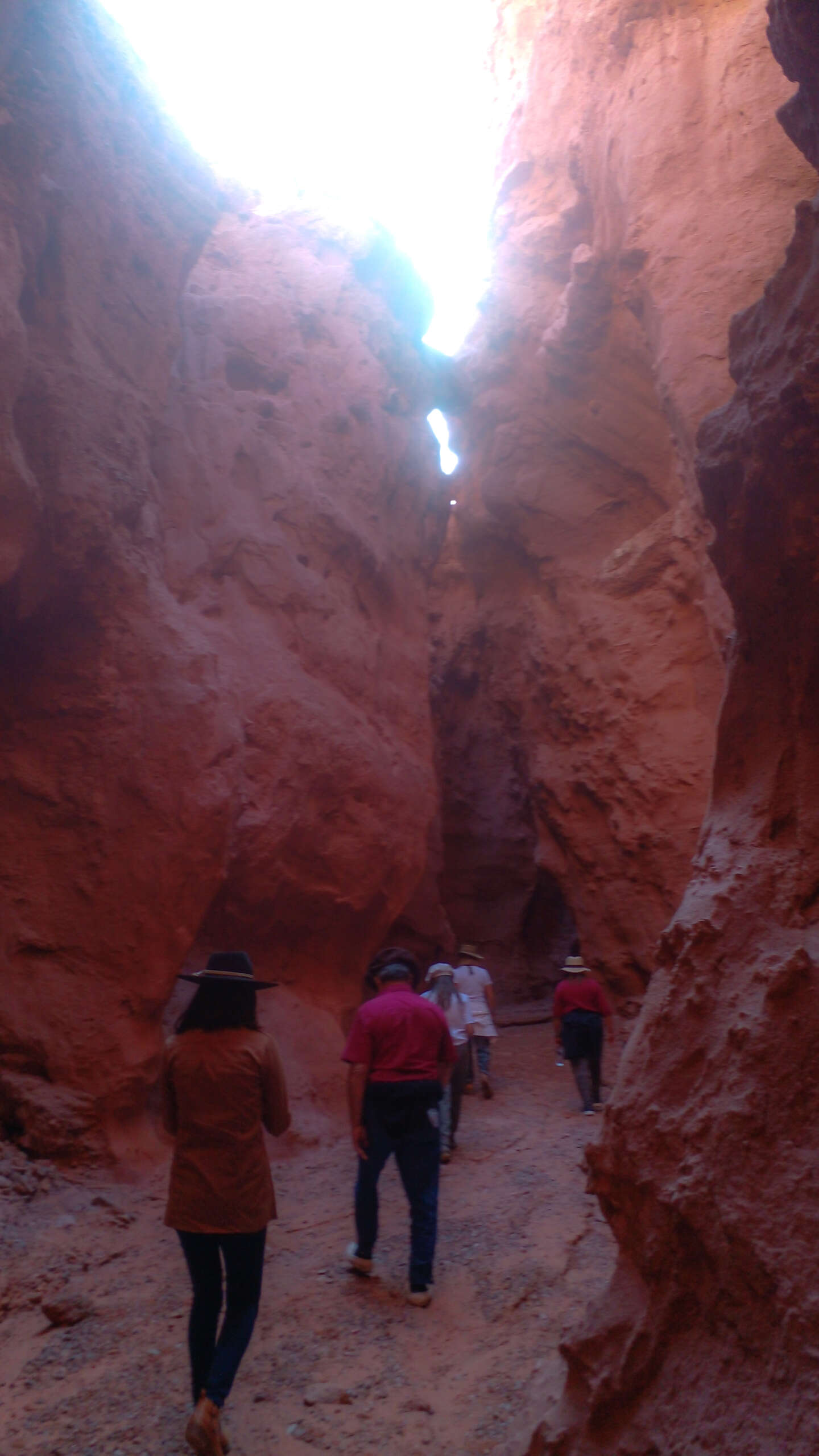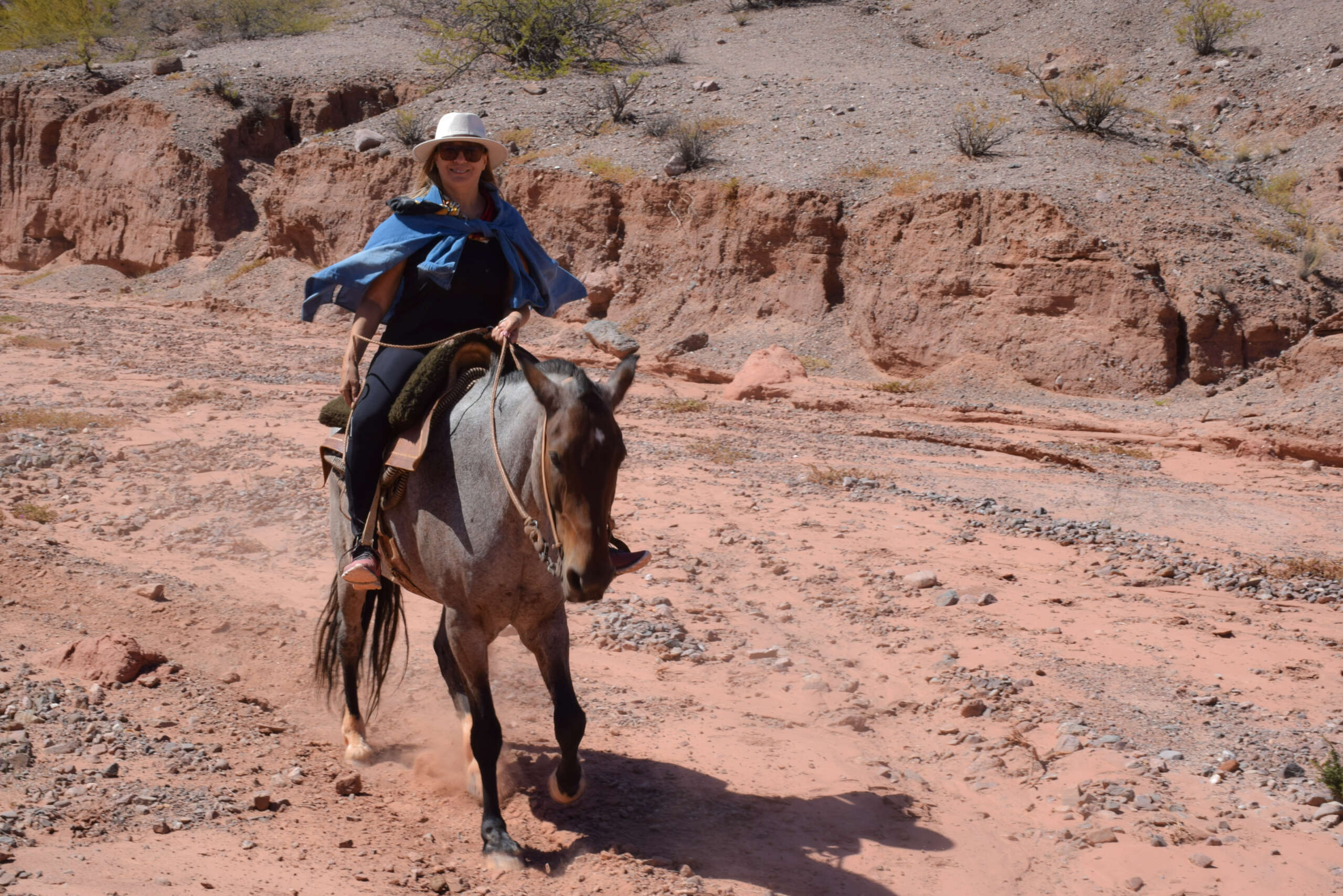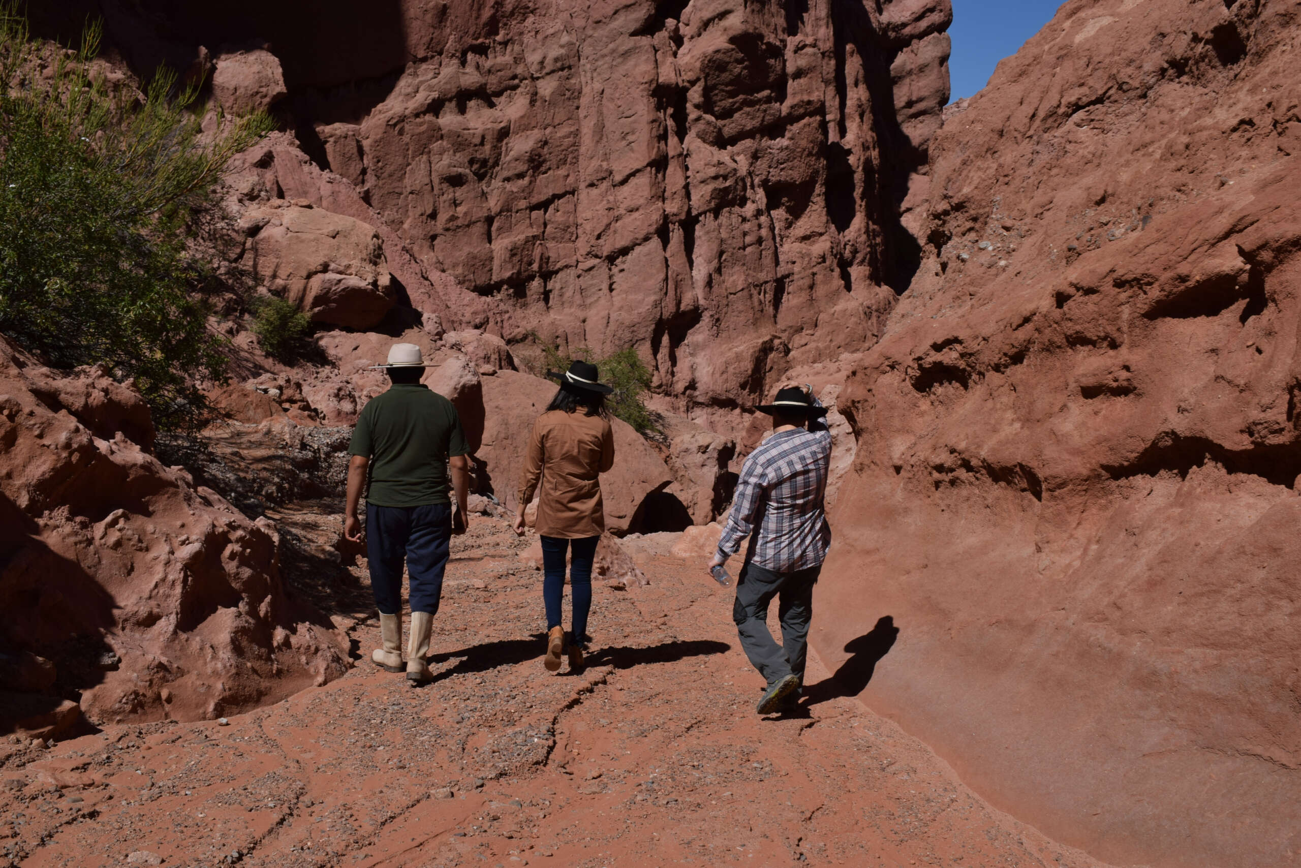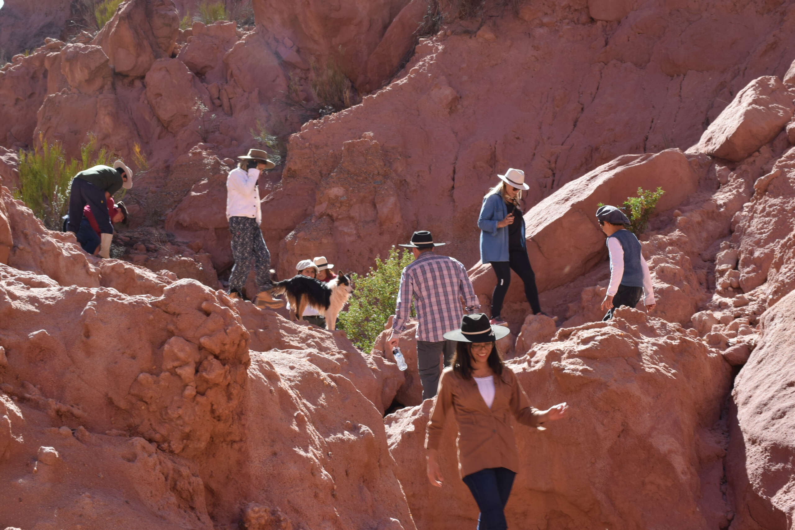 En un momento no pudimos avanzar más, bajamos de los caballos que quedaron a cargo de Fidel y comenzamos a caminar por pasadizos angostos entre los cerros hasta llegar a una cueva. De pronto, Agustina, una niña hermosa, reina de la Vendimia de Animaná que era parte del grupo, comenzó a cantar «Fuego en Animaná» su voz en esa acústica natural hizo de ese momento algo sublime, que creo que quedará para siempre en el corazón de cada uno de los que estábamos ahí.