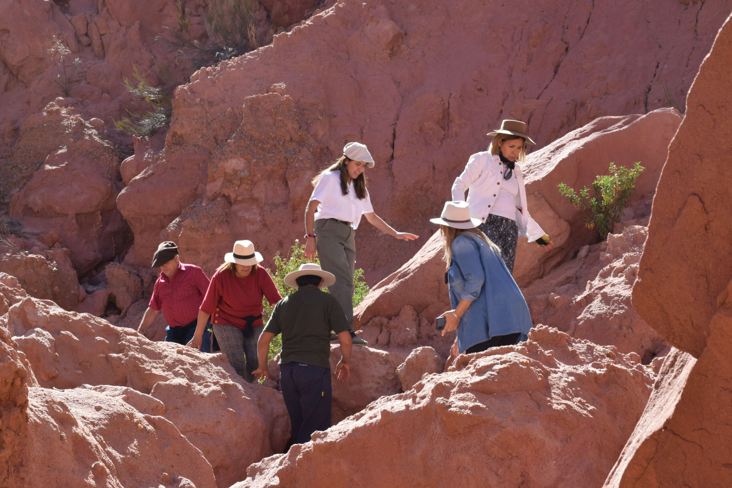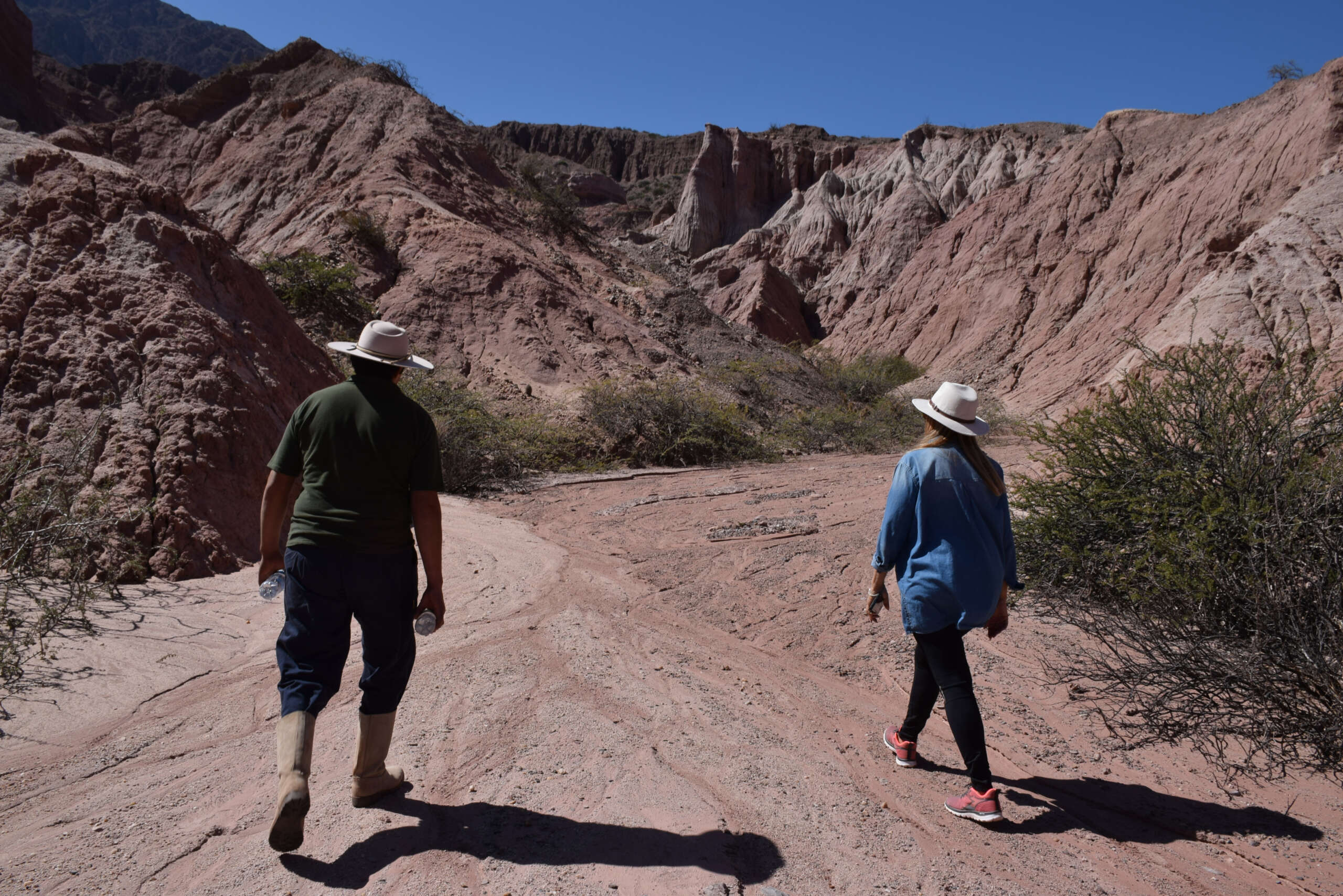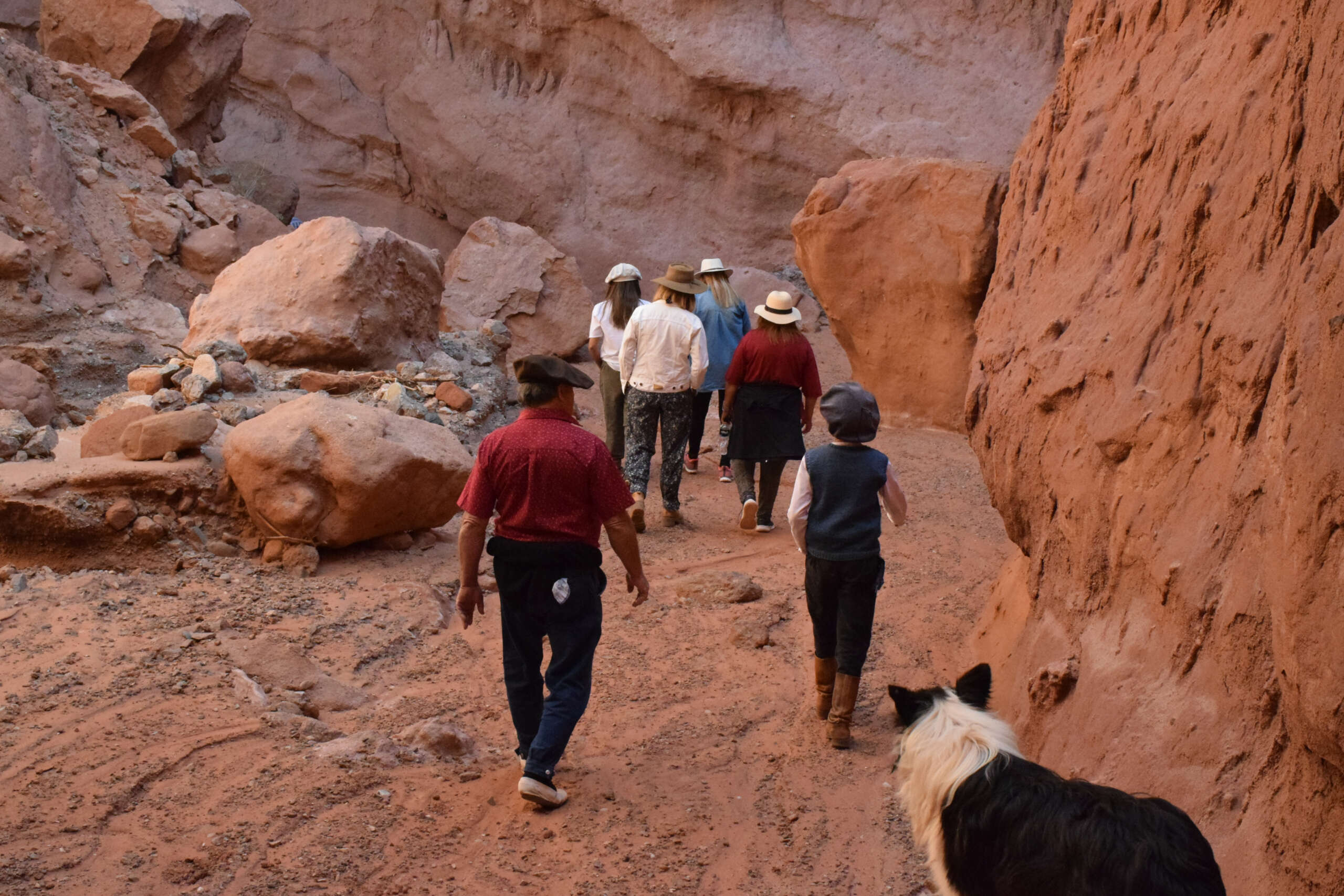 En un momento no pudimos avanzar más, bajamos de los caballos que quedaron a cargo de Fidel y comenzamos a caminar por pasadizos angostos entre los cerros hasta llegar a una cueva. De pronto, Agustina, una niña hermosa, reina de la Vendimia de Animaná que era parte del grupo, comenzó a cantar «Fuego en Animaná» su voz en esa acústica natural hizo de ese momento algo sublime, que creo que quedará para siempre en el corazón de cada uno de los que estábamos ahí.