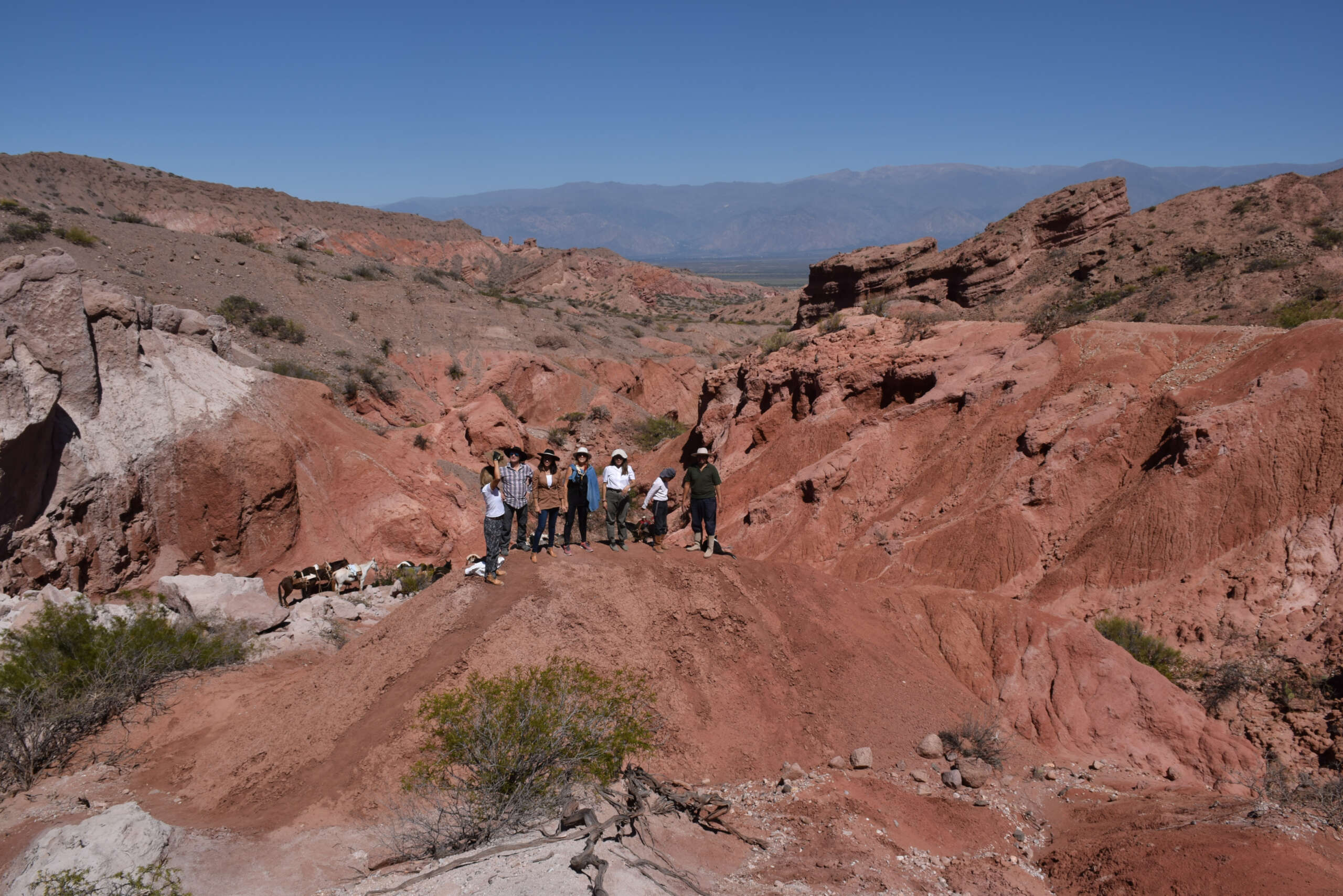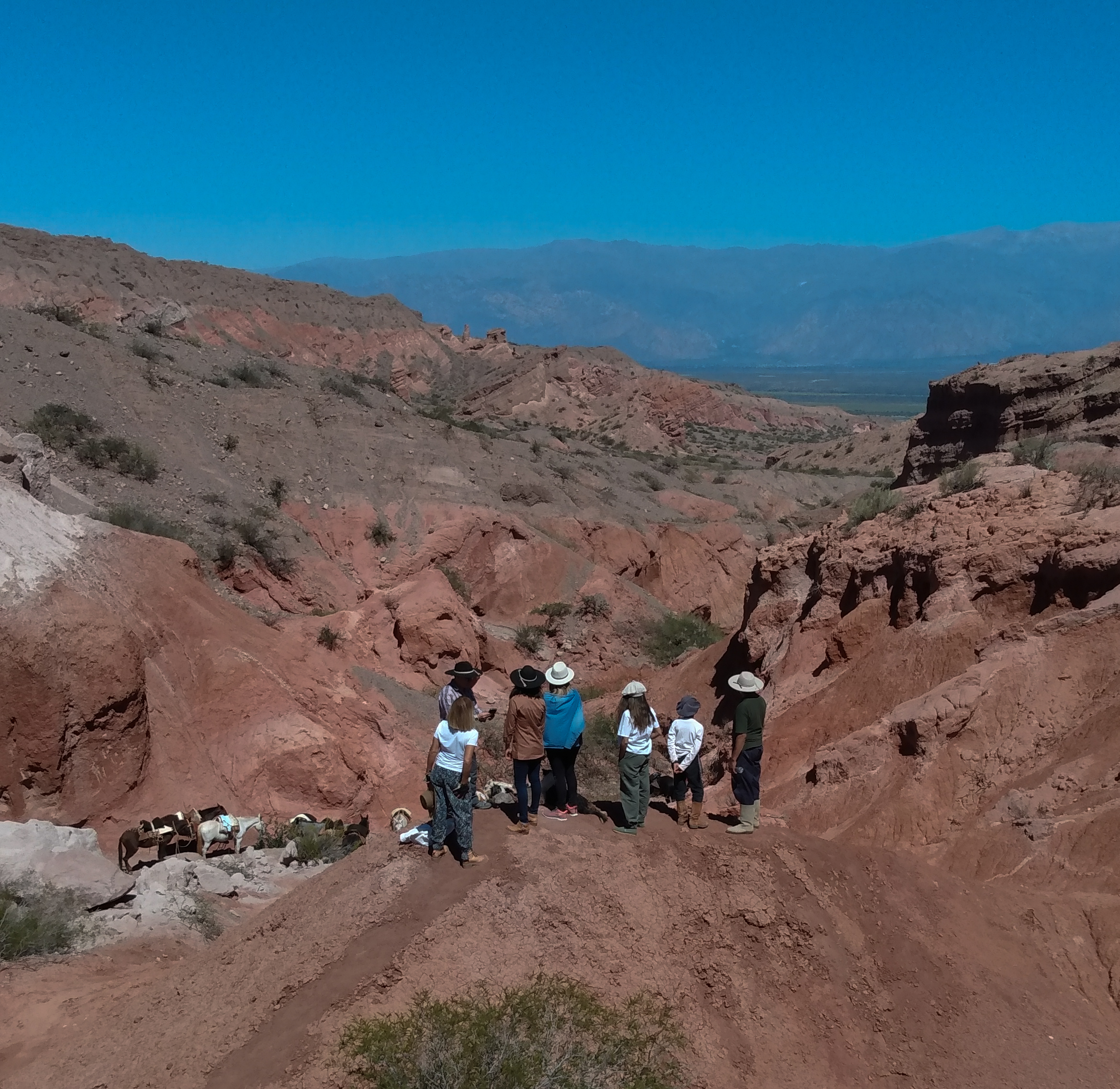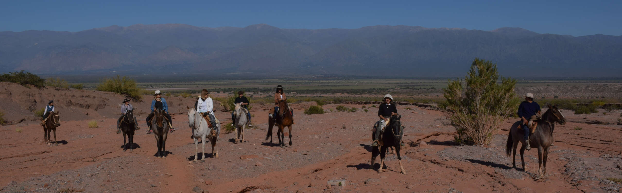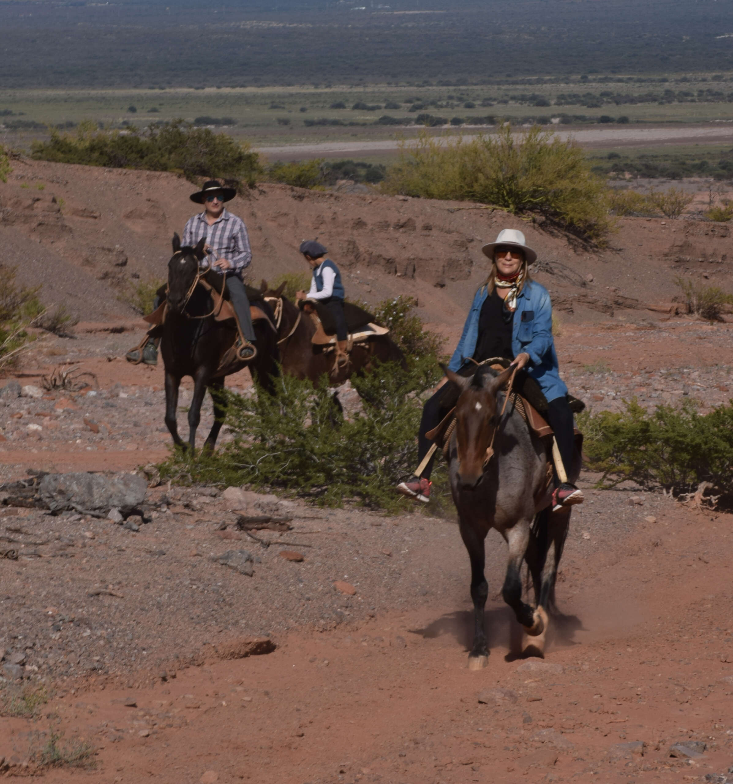 Fidel, León y Walter ensillaban los caballos y allí partimos. Once personas hicimos la cabalgata, primero por una llanura rodeada de cerros hasta que comenzamos a internarnos por el Cañón del Colorado del Cerro «El Zorrito».