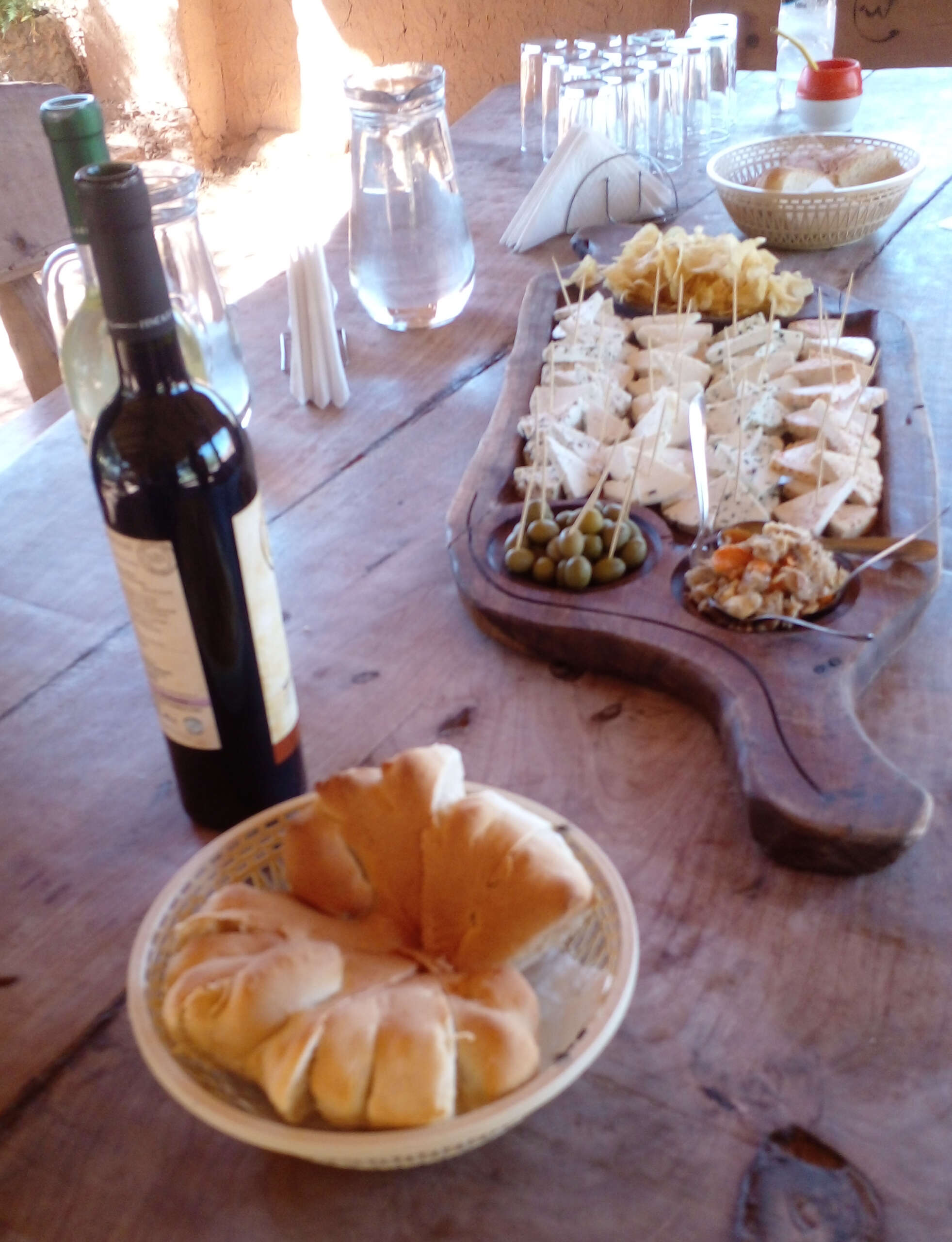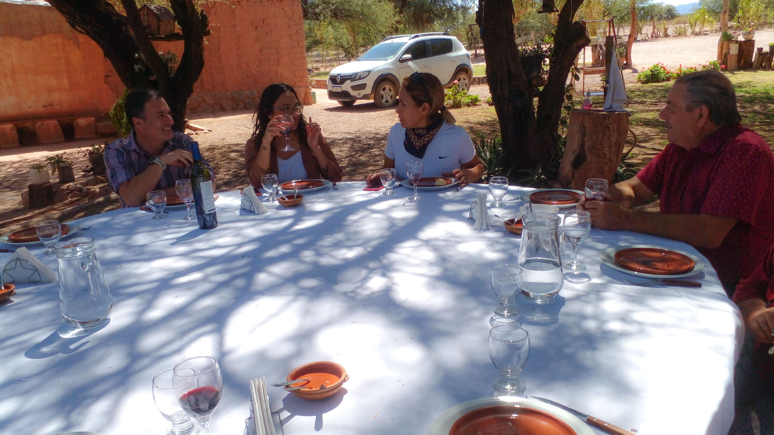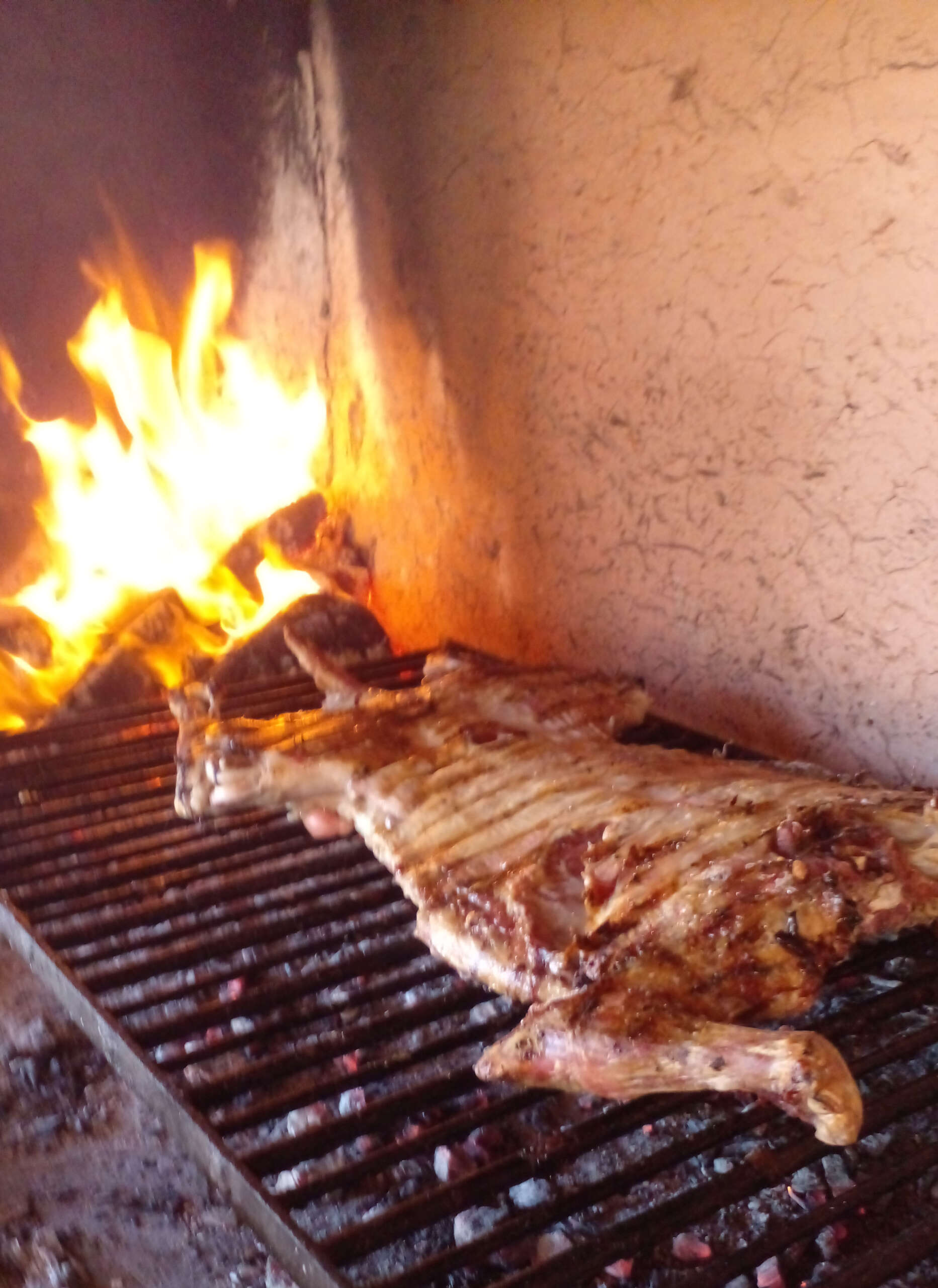 Cerca de las dos de la tarde, llegamos a la finca, allí nos esperaba una picada de productos caseros y después del brindis, una mesa redonda, enorme, con impecable mantel blanco nos invitaba a rodearla y compartir unas ricas empanadas y un cabrito que Ely había asado a fuego lento, mientras nosotros hacíamos la cabalgata.