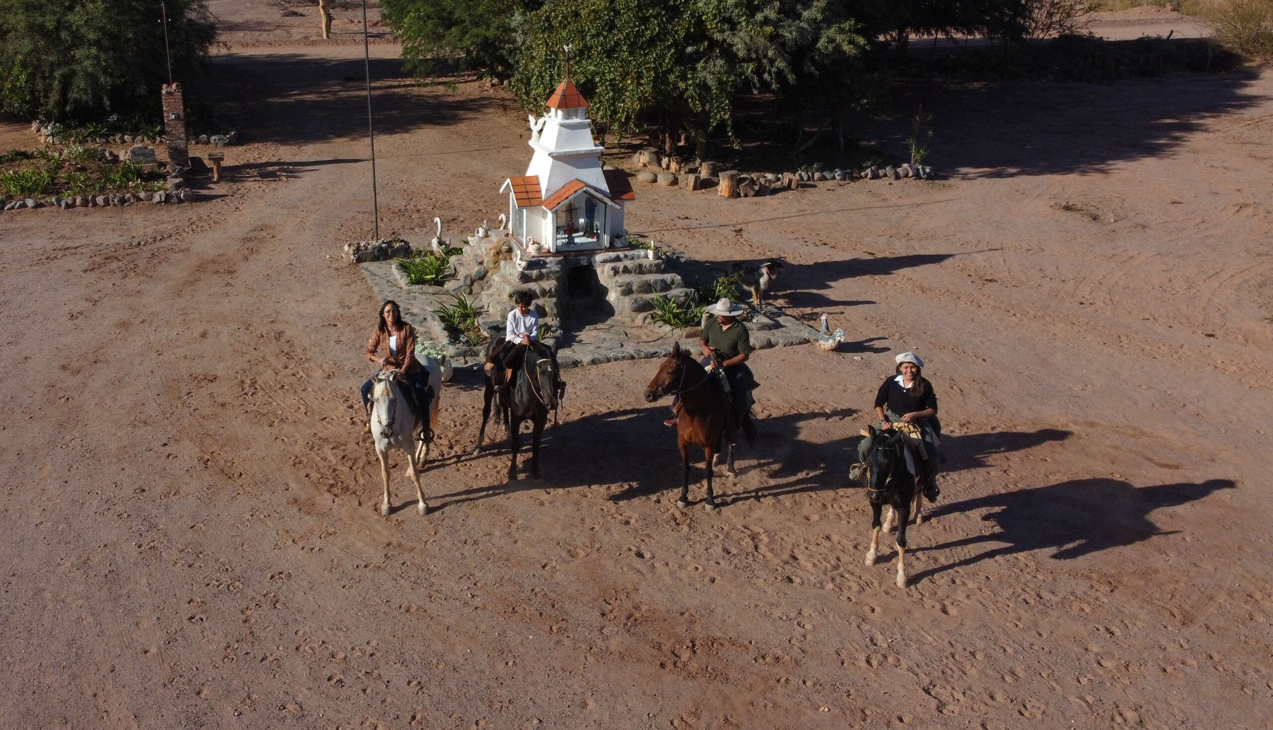 No perdimos tiempo en bajar el equipaje, queríamos disfrutar del paisaje que nos rodeaba, era casi el atardecer, los rayos del sol comenzaban a caer en el horizonte y daban a los cerros tonalidades naranjas con algunas sombras que sentíamos la necesidad de guardar en la retina. Vimos como Mirta, la madre de Walter con paso lento se dirigía a encender las luces de esa pequeña capillita y en profundo silencio quedarse allí parada, seguramente sumida en sus oraciones.
