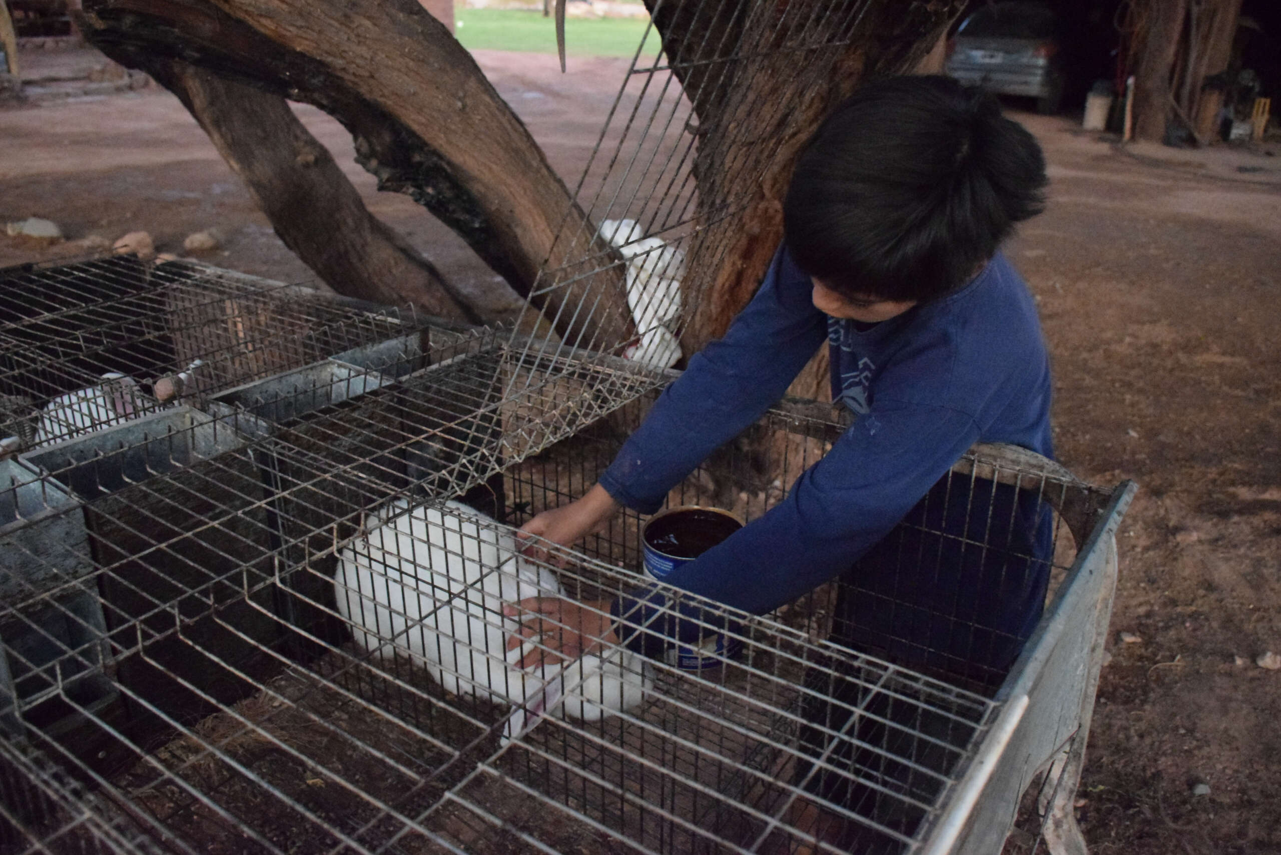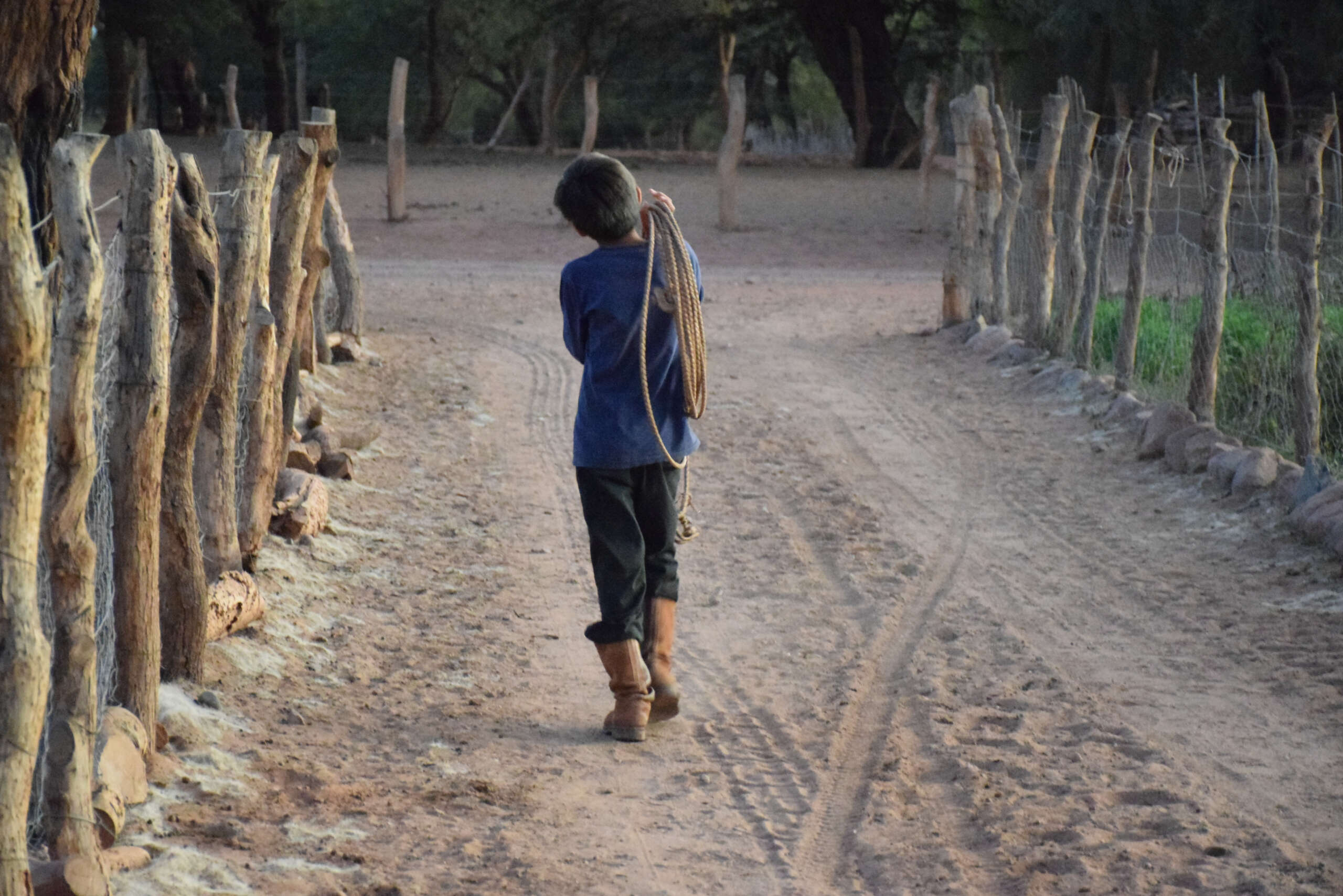 Era fascinante ver esa tarea. León con sus 10 años, nos cuenta que va a la escuela de Corralito, que cría conejos, que le gusta trabajar con los cueros. Emociona ver a ese niño que ama lo que hace, que ama su lugar, que vive en armonía con la naturaleza. Lo escuchamos con respeto y atención, es un niño lleno de sabiduría, de ternura, ojalá la vida siempre le conserve su sonrisa, esa mirada que ve con asombro los lugares que habita, el amor por su terruño. Creo adivinar como será la vida de León…