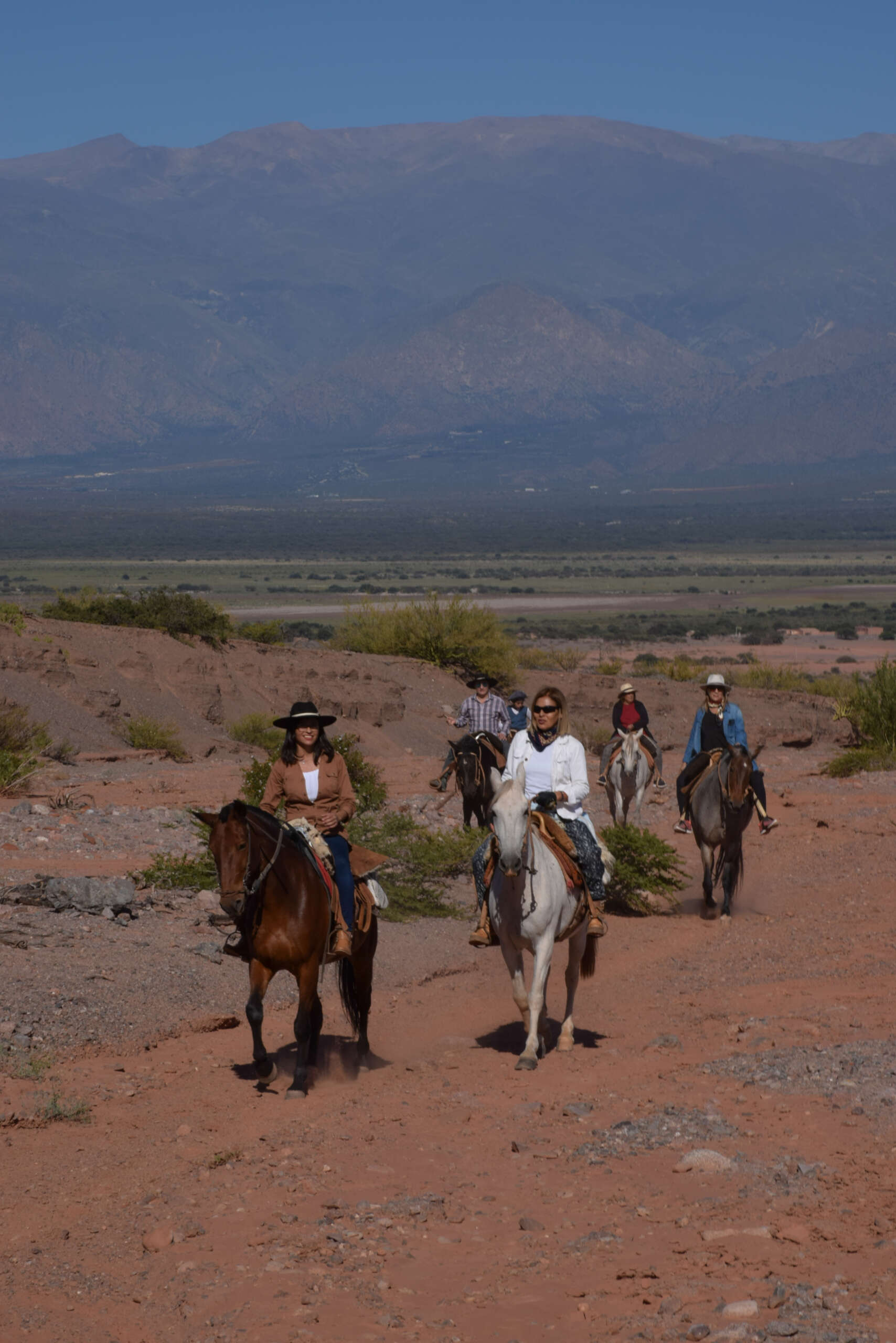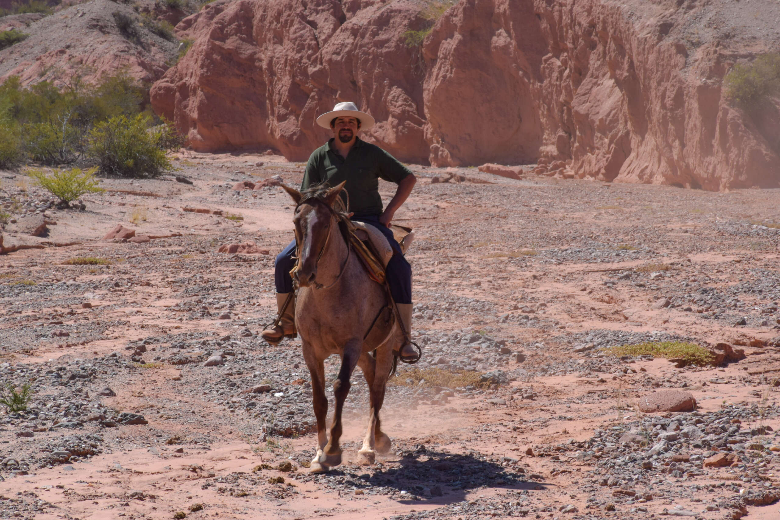 Detuvimos el auto y nos recibió Walter. Con una sonrisa amplia nos dio la bienvenida al lugar, nos contó de su finca, del trabajo puesto en ese emprendimiento turístico familiar, nos ofreció un lugar para hospedarnos y nos invitó a vivir la experiencia de hacer una cabalgata por el corazón de los Cerros Calchaquíes. No lo dudamos un instante… el lugar era sencillo, acogedor, impecable.