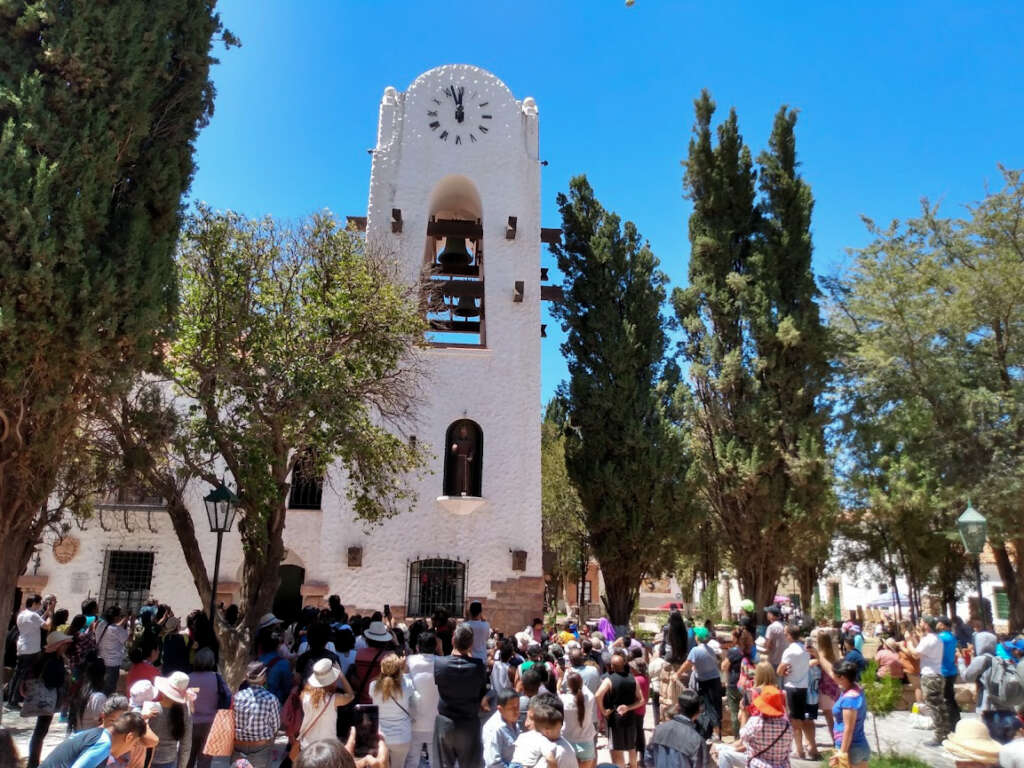 Desde arriba se ven decenas de artesanos ofreciendo sus productos a los turistas, el colorido es increíble, artesanías que se pueden encontrar a lo largo de sus calles angostas que merecen ser recorridas a pie y sin prisa, se observa también el edificio del Cabildo y en el reloj de su torre la estatua articulada de San Francisco Solano, que cada mediodía sale para dar la bendición a cientos de turistas expectantes.