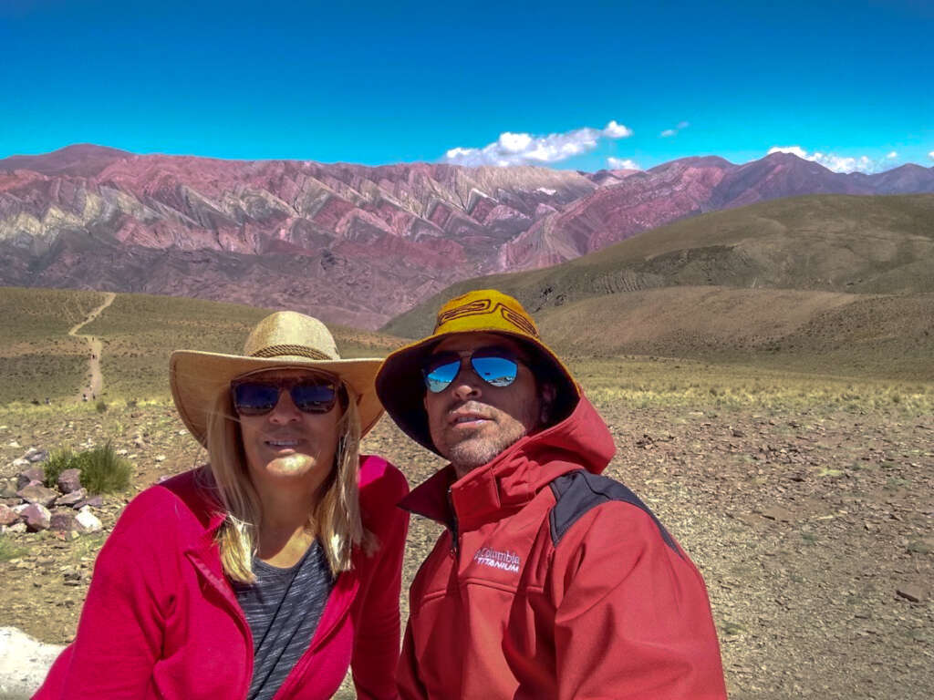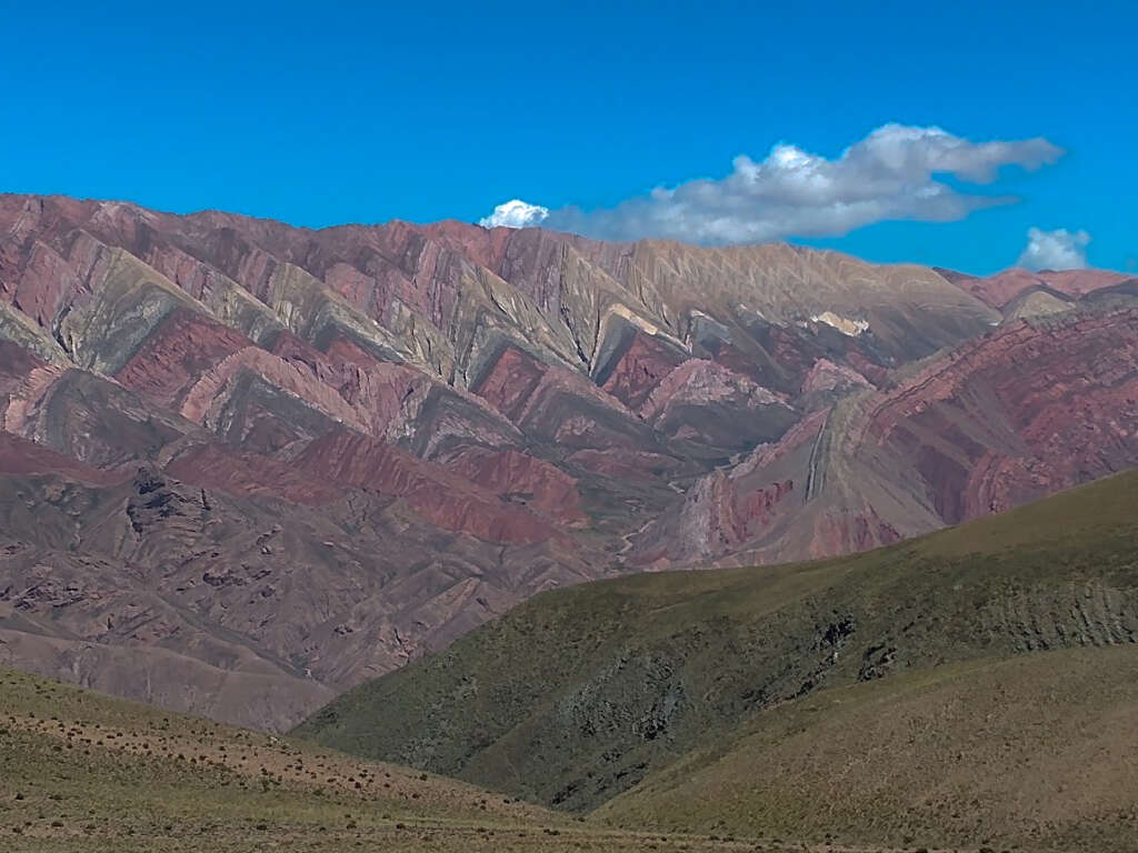 Salimos de la hostería y emprendimos el viaje de 25 kilómetros por un serpenteante camino de ripio en muy buen estado hacia las Serranía de Hornocal. Llegamos hasta allí y uno se pregunta..¿La magia existe? Indudablemente, la geológica sí, porque uno se para ahí y queda sin aliento, sin palabras, parece imposible tanta maravilla. Dicen que se ven hasta 33 colores o matices, creo que es imposible contarlos… es para sentarse en silencio y observar… siempre ronda el miedo a olvidar las imágenes, por eso se siente la necesidad de querer estirar el tiempo…
