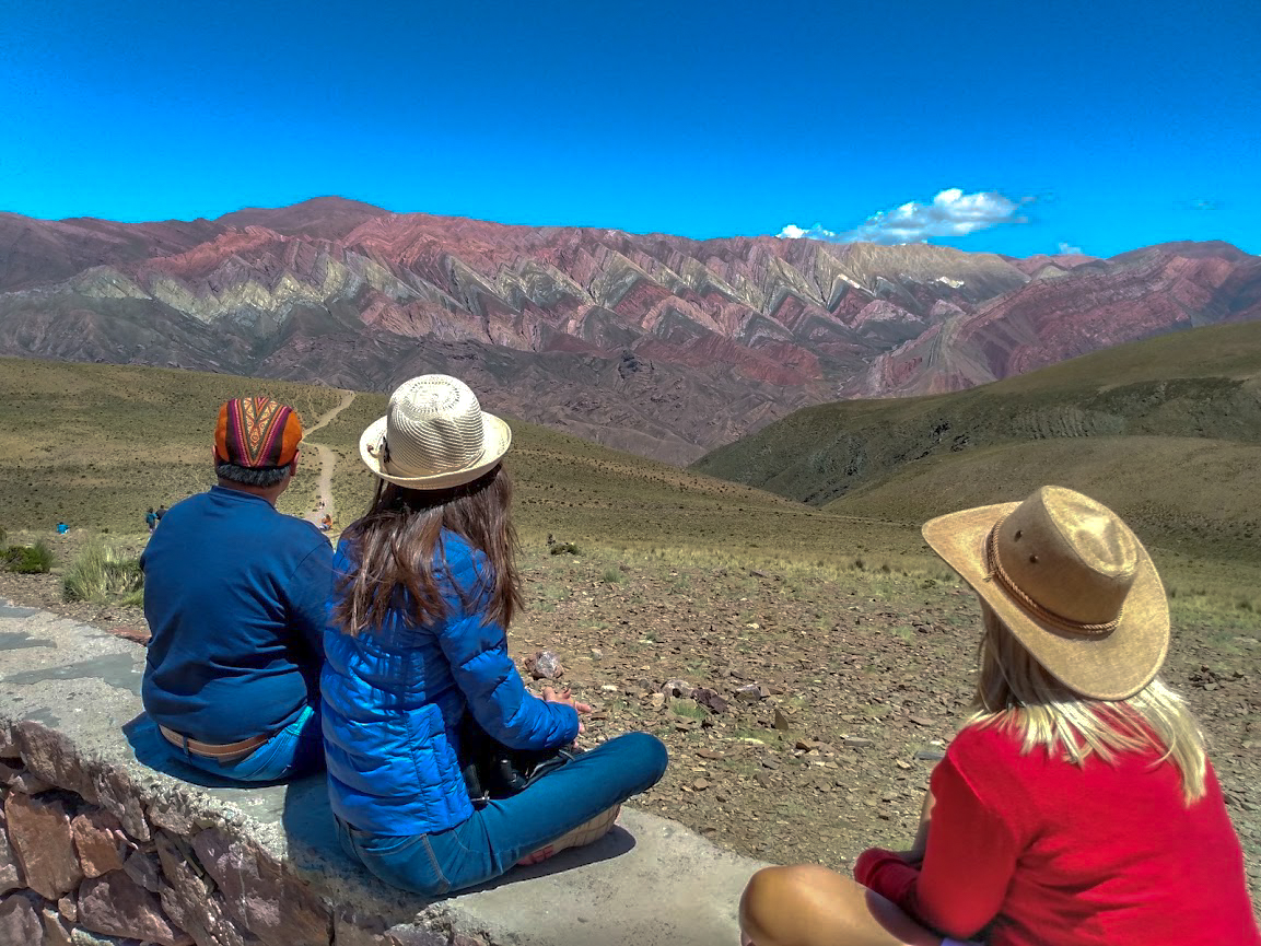 Salimos de la hostería y emprendimos el viaje de 25 kilómetros por un serpenteante camino de ripio en muy buen estado hacia las Serranía de Hornocal. Llegamos hasta allí y uno se pregunta..¿La magia existe? Indudablemente, la geológica sí, porque uno se para ahí y queda sin aliento, sin palabras, parece imposible tanta maravilla. Dicen que se ven hasta 33 colores o matices, creo que es imposible contarlos… es para sentarse en silencio y observar… siempre ronda el miedo a olvidar las imágenes, por eso se siente la necesidad de querer estirar el tiempo…