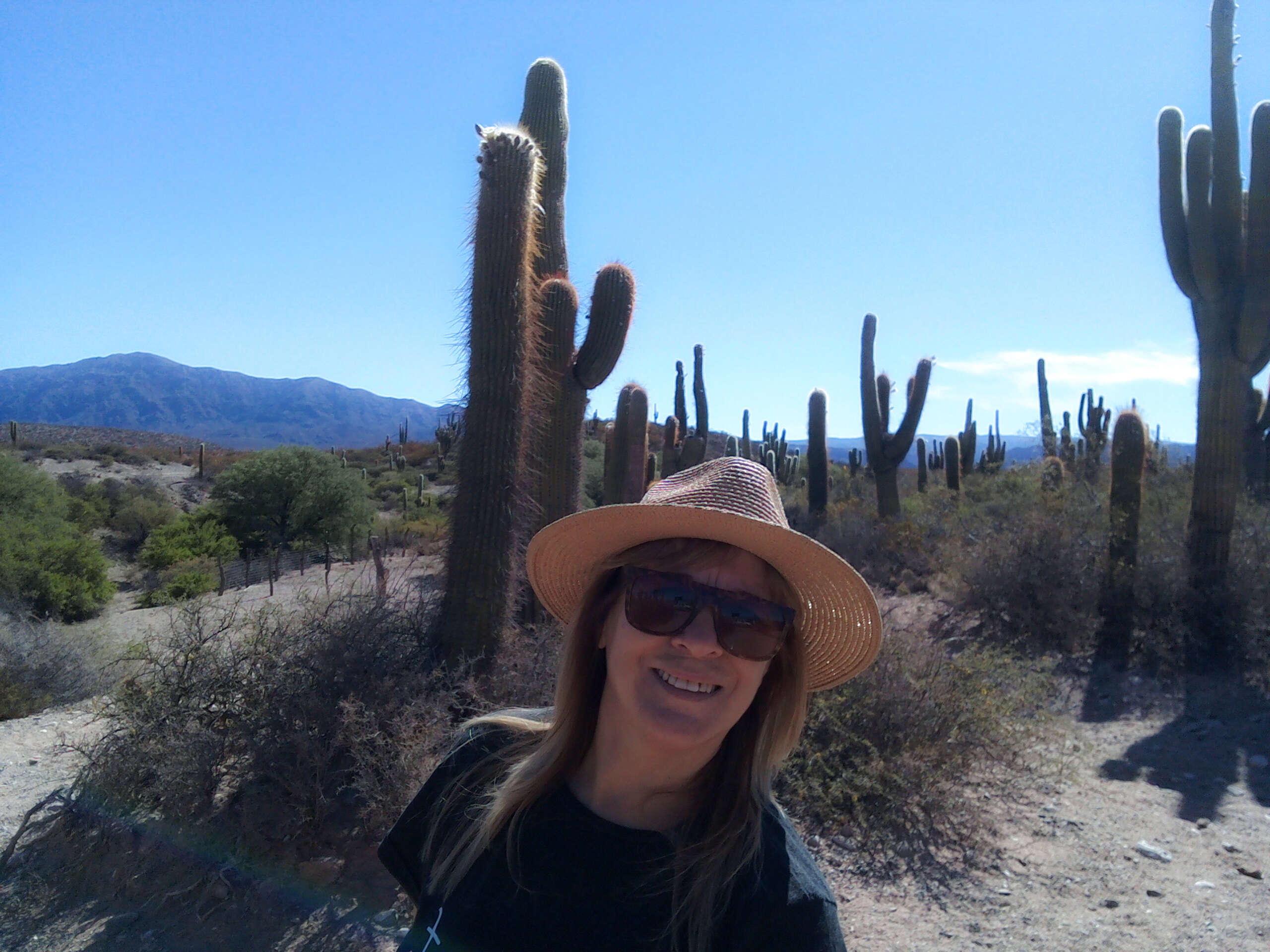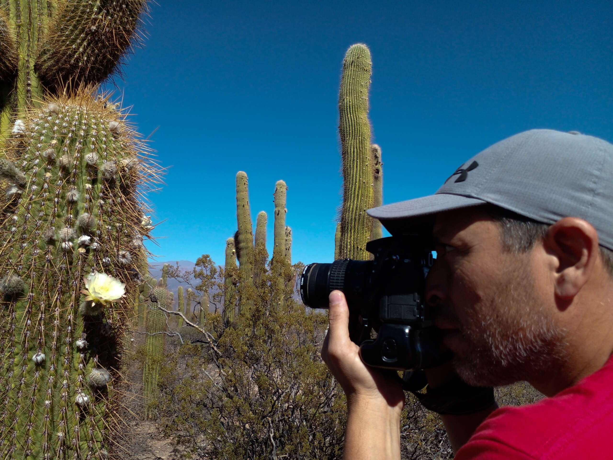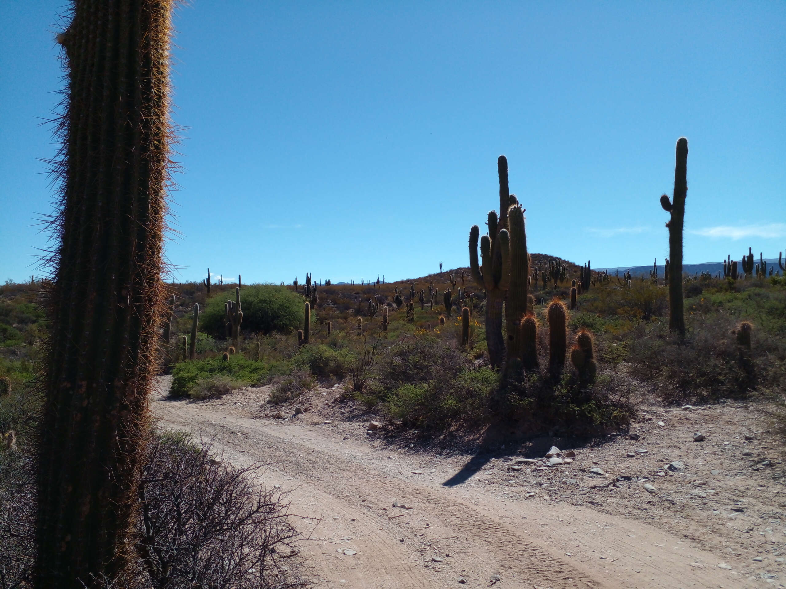 Subimos a la camioneta y comenzamos a andar… una huella apenas, Tavo con maestría nos conducía por una senda, cruzamos el Cardonal, era fines de noviembre y esa multitud de cardones altos, erguidos, legendarios, habían comenzado a florecer. Sus flores blancas nacaradas eran algo tan increíble, que era imposible no detenernos a sacar fotos, la sutileza de las flores en ese paisaje agreste era maravilloso.