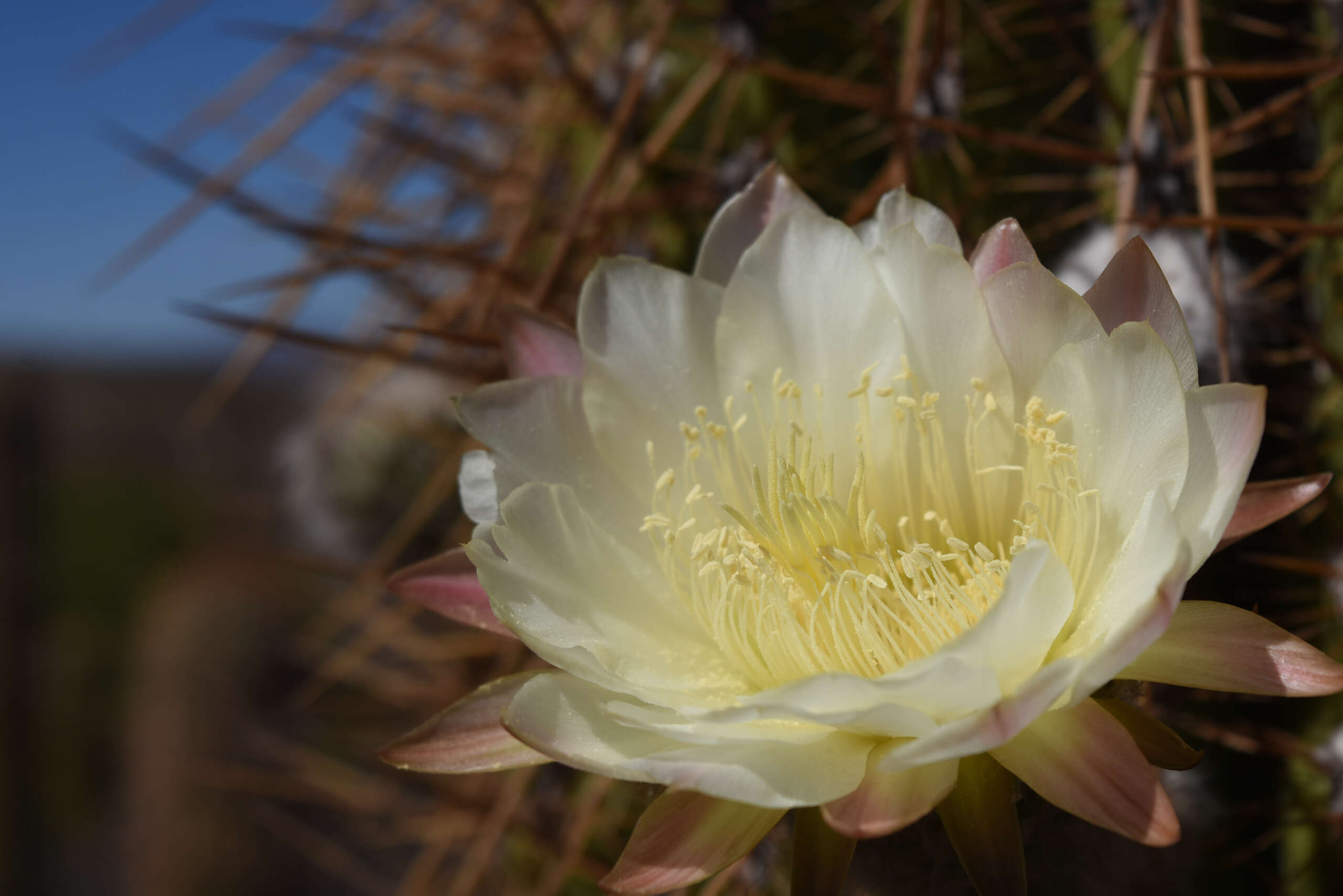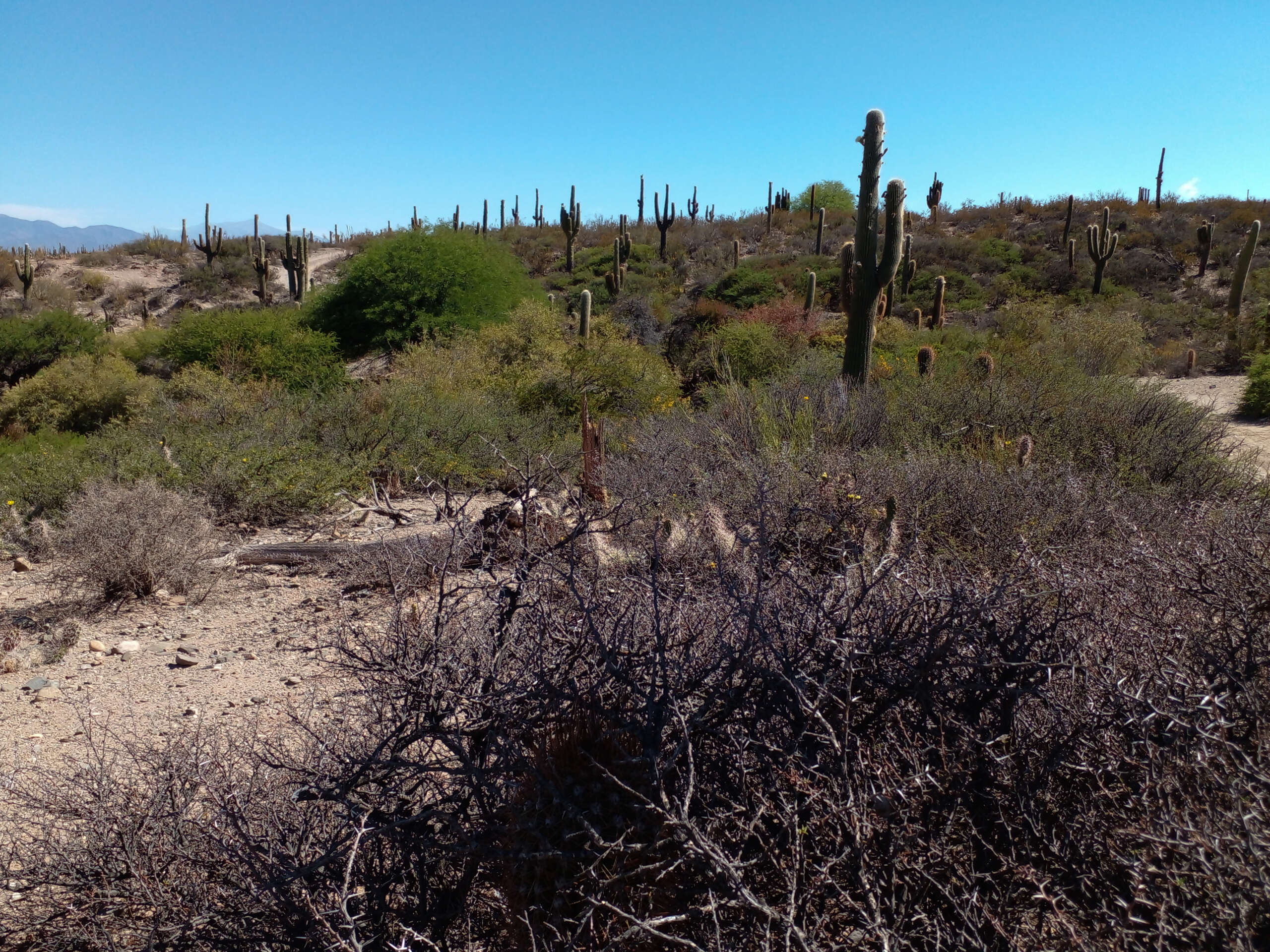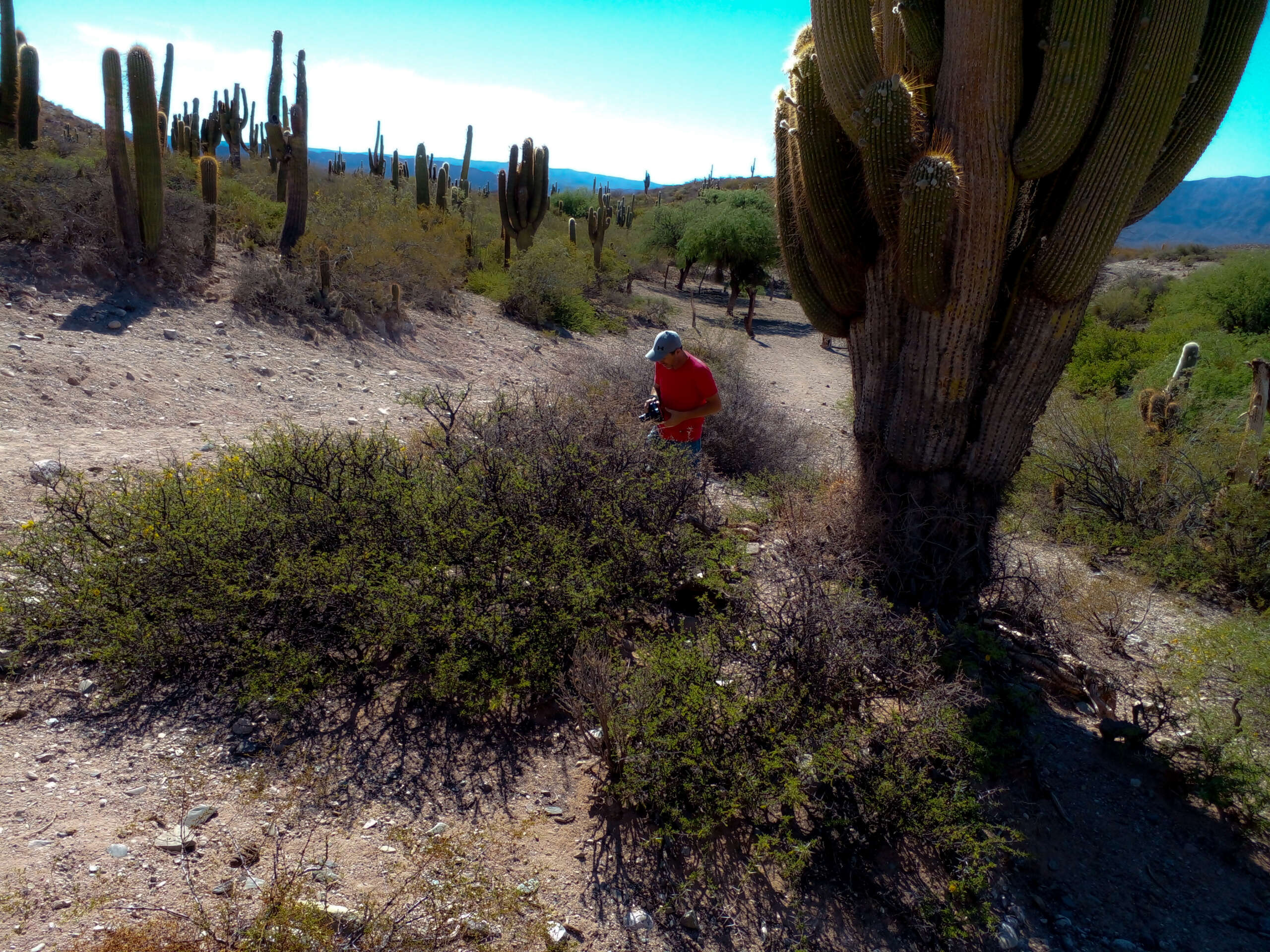 Subimos a la camioneta y comenzamos a andar… una huella apenas, Tavo con maestría nos conducía por una senda, cruzamos el Cardonal, era fines de noviembre y esa multitud de cardones altos, erguidos, legendarios, habían comenzado a florecer. Sus flores blancas nacaradas eran algo tan increíble, que era imposible no detenernos a sacar fotos, la sutileza de las flores en ese paisaje agreste era maravilloso.