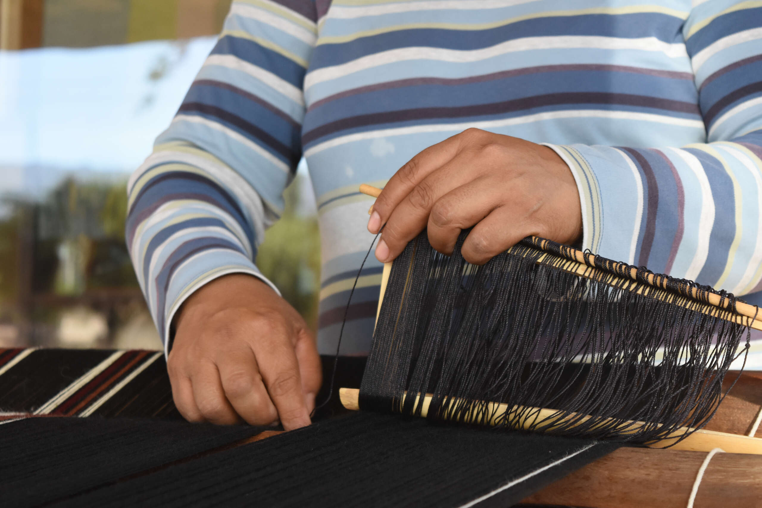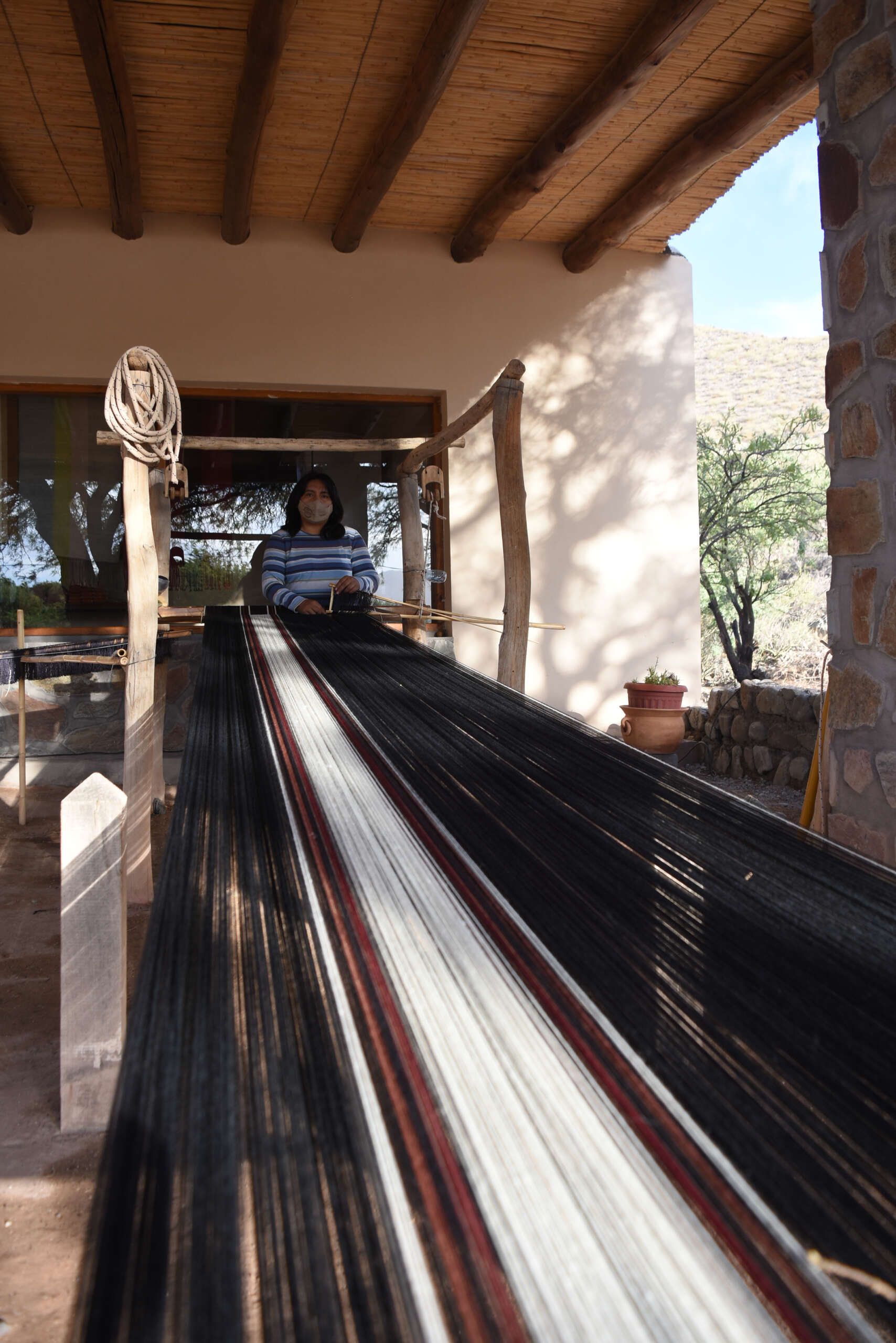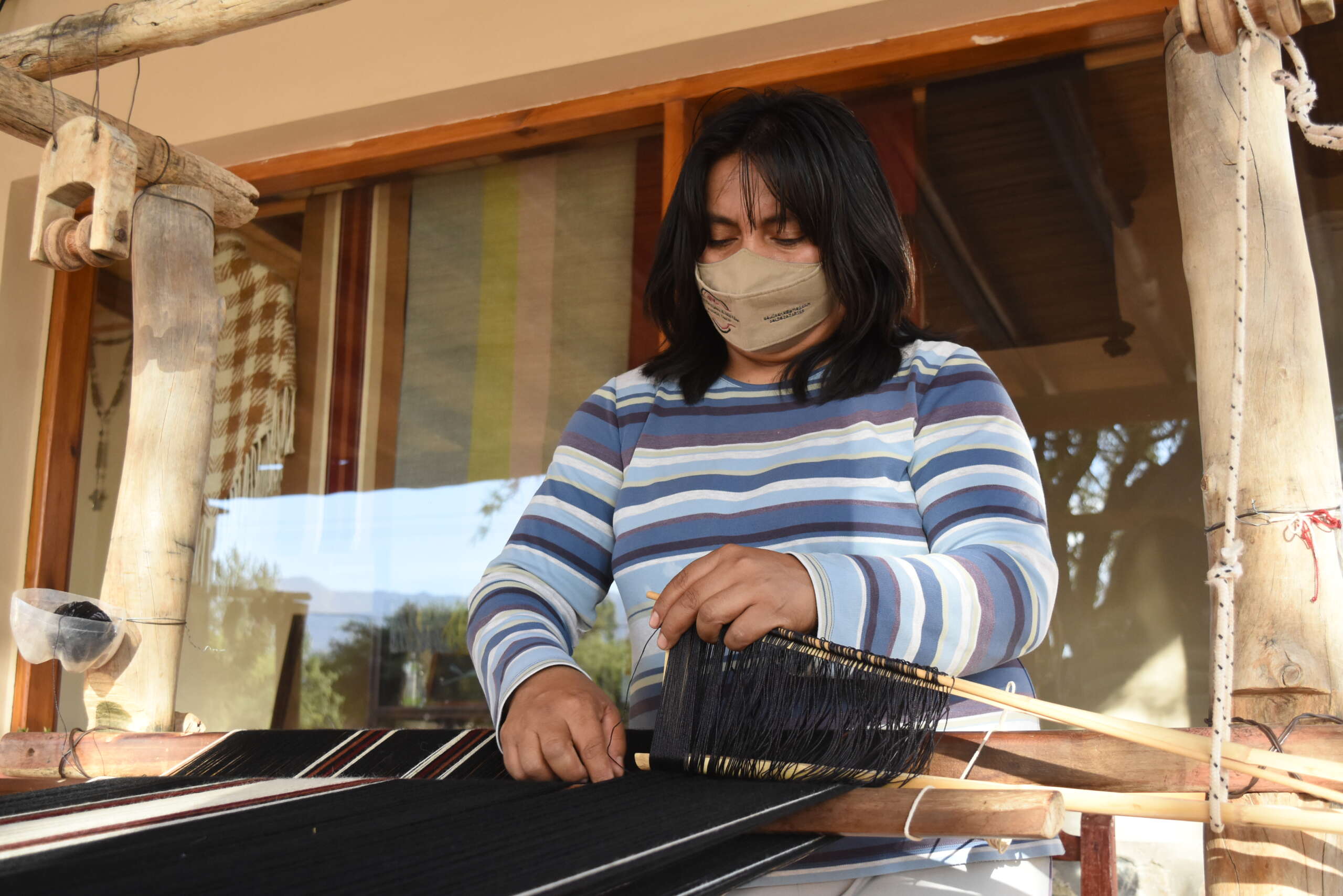 En los otros telares trabajan su hijo y su hermana, y se le nota el orgullo de continuar con la labor de sus antepasados, la técnica enseñada de generación en generación.