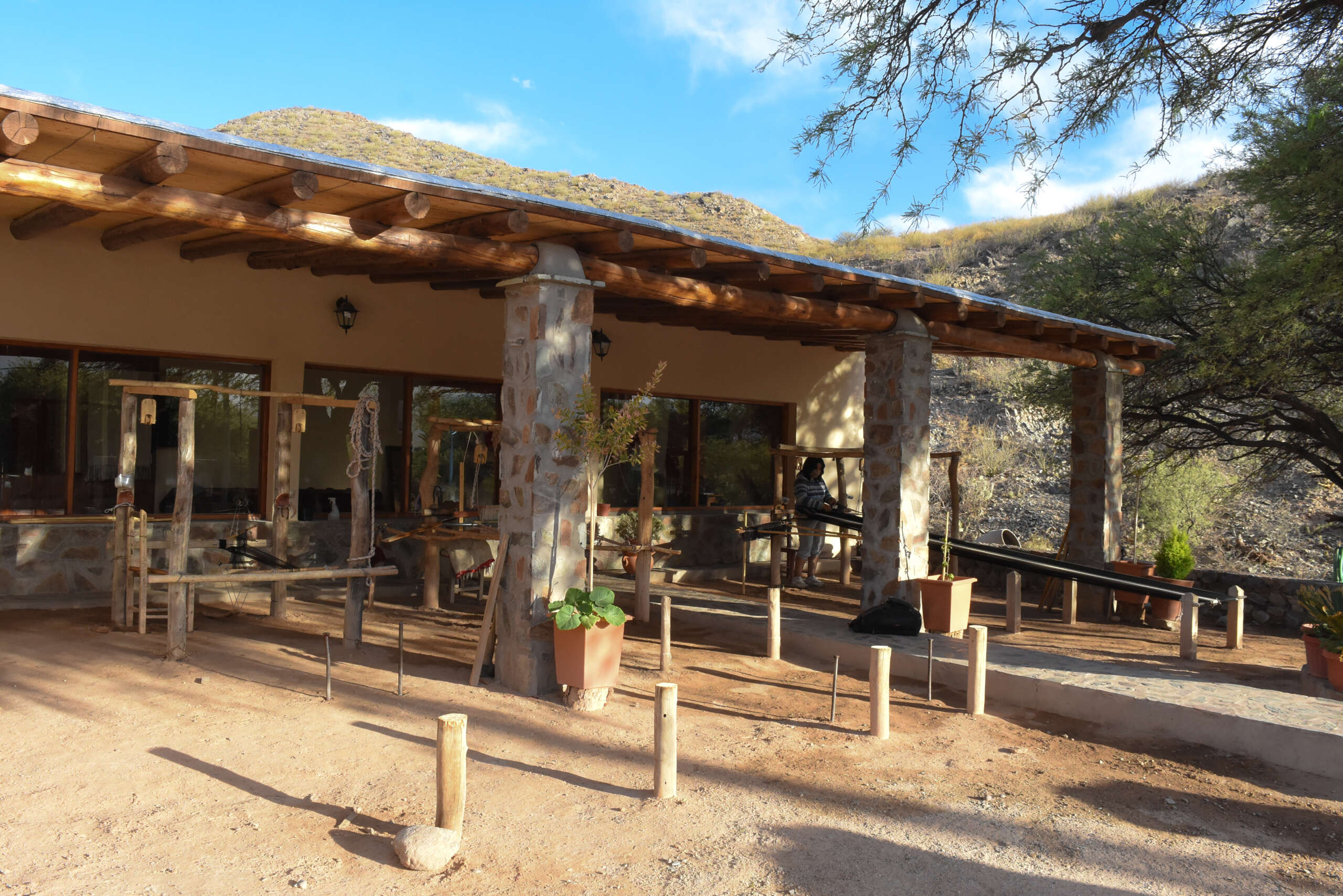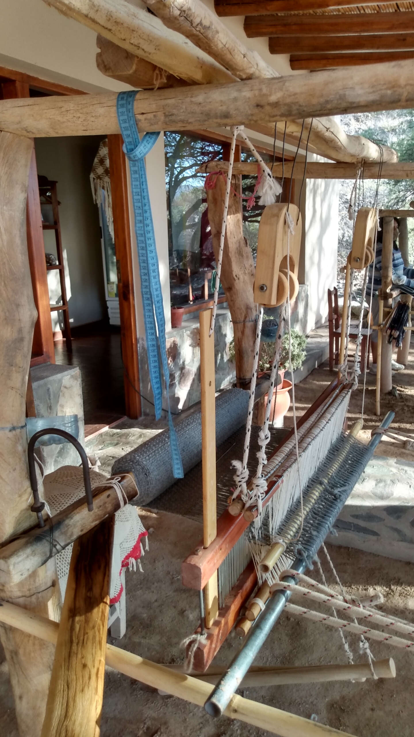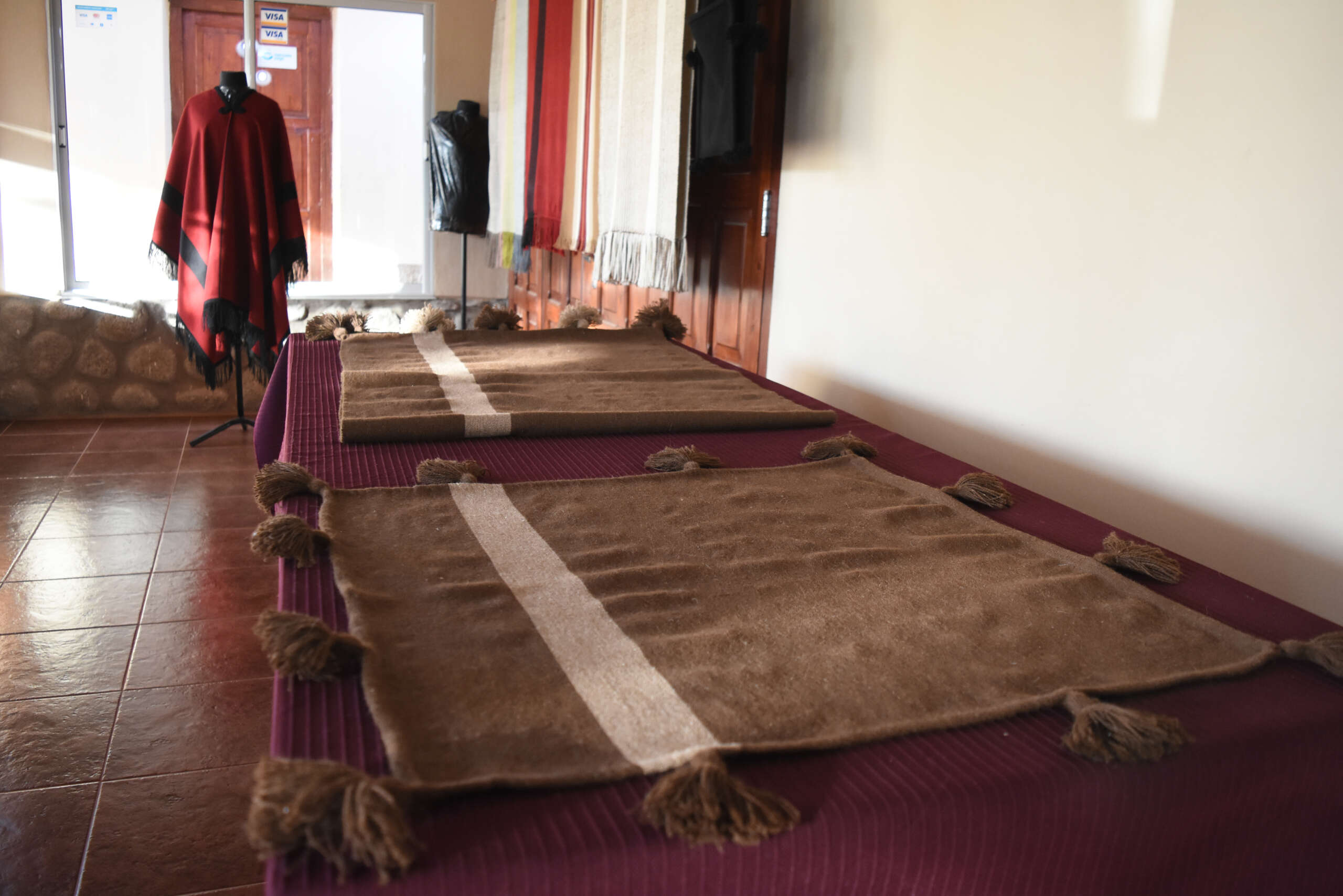 Llegamos hasta Seclantás y nos llevó a visitar las tejedoras. A la casa de Paulina Canavides, quien amablemente nos recibió. En su patio pulcro, prolijo, había tres telares, allí se realizan mantas, ponchos, alforjas, chales, caminos de mesa. Paulina nos muestra los trofeos ganados por sus obras de arte. Se pone a tejer en su telar, con paciencia nos muestra como lo hace, la habilidad de sus manos, la delicadeza de esa prenda es asombrosa, Entre 8 a 10 horas de trabajo diario durante 10 días, le lleva terminar un poncho.