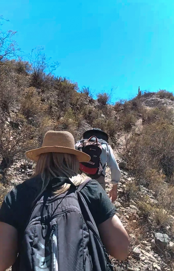 Pusimos unas botellas de agua en la mochila, Ezequiel cargó todo el equipamiento, con el entusiasmo que le genera saber que va hacia lugares que podrá registrar con sus cámaras. Pura adrenalina y amor por lo que hace.