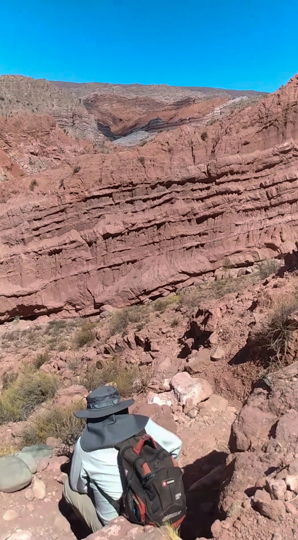 Continuamos un rato más hasta llegar a un punto donde ya no se podía seguir en el vehículo. Tavo agarró su mochila con 5 bananas, que serían nuestro alimento, y dos botellitas de Gatorade, y ahí comenzamos la aventura de caminar. Subimos hasta la cresta del cordón Los Colorados, tomar aire, mirar…mirar esas montañas majestuosas, ese respeto que uno siente en esos lugares por la naturaleza, por la creación.